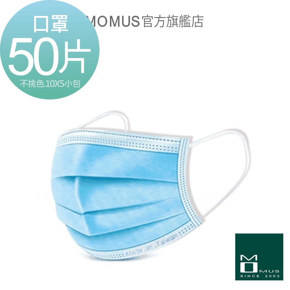 MOMUS 醫療用口罩 (未滅菌) 50片/盒.MIT 台灣製造 成人平面口罩 三層平面口罩