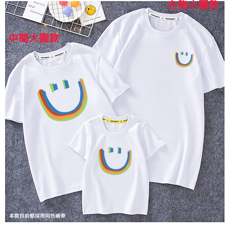 蠟筆多彩層疊笑臉 親子裝 情侶裝 純棉 現貨 110~XL 情侶裝 台灣製【Y0899-20】全家福 快速出貨 加大尺吋