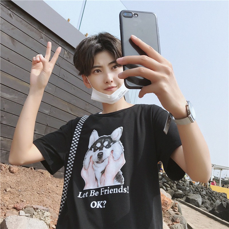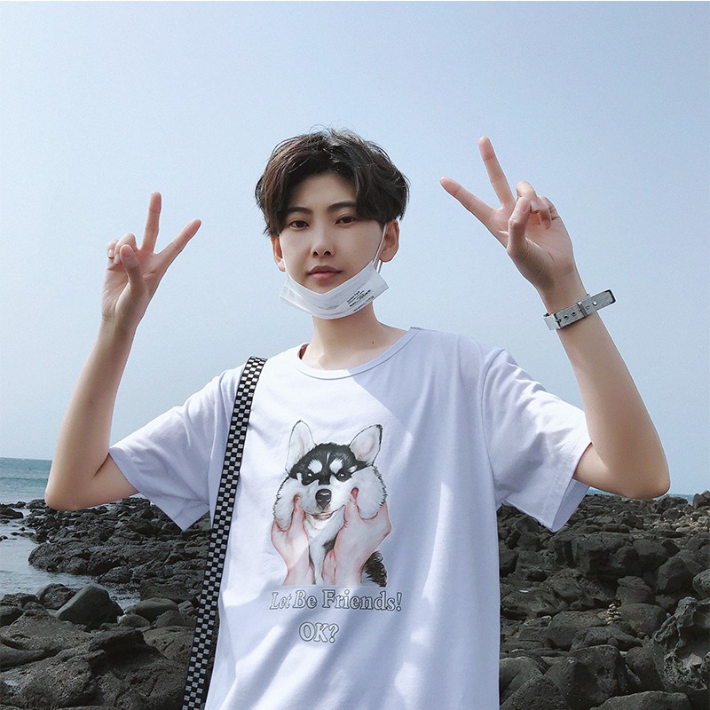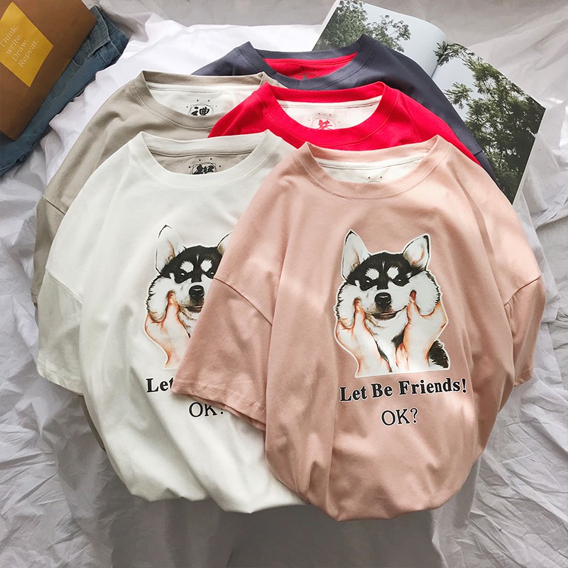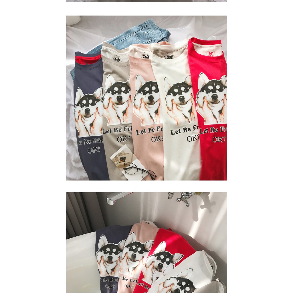 情侶裝 潮T 班服 情侶t 純棉短t 台灣製造 哈士奇 【YC595】捏臉萌狗 可客製化 24小時快速出貨