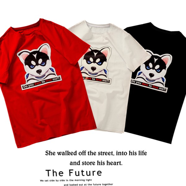 情侶裝 潮T 班服 情侶t 純棉短t 台灣製 哈士奇 機器狗【YC598】可客製化 24小時快速出貨