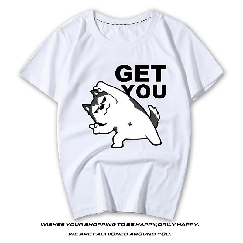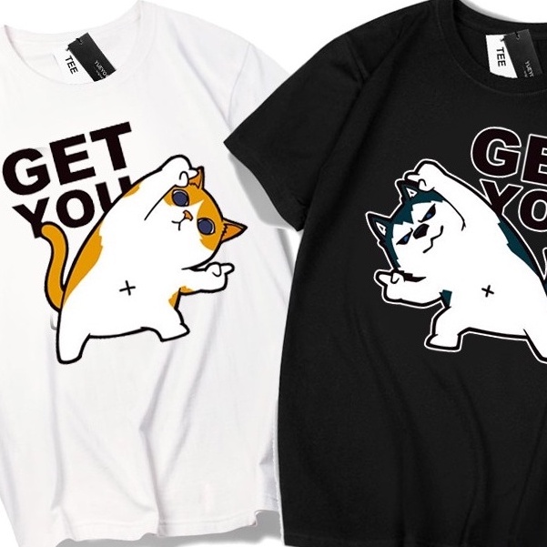 情侶裝 kuso 情侶T 潮T純棉短T MIT台灣製 哈士奇貓咪合體【Y0870-2】班服 24小時快速出貨 過年不打烊