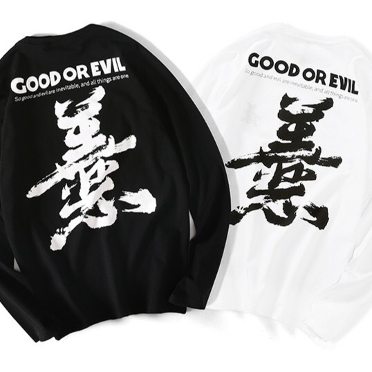 情侶裝 純棉長T MIT【YL66009】長袖 中國風 善惡 班服 團體服 艾咪e鋪 24小時快速出貨