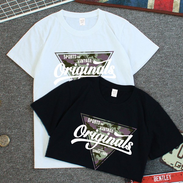 現貨 情侶裝 情侶T 潮T 圓領純棉T恤 MIT台灣製【YC659】迷彩三角英文字 24小時快速出貨