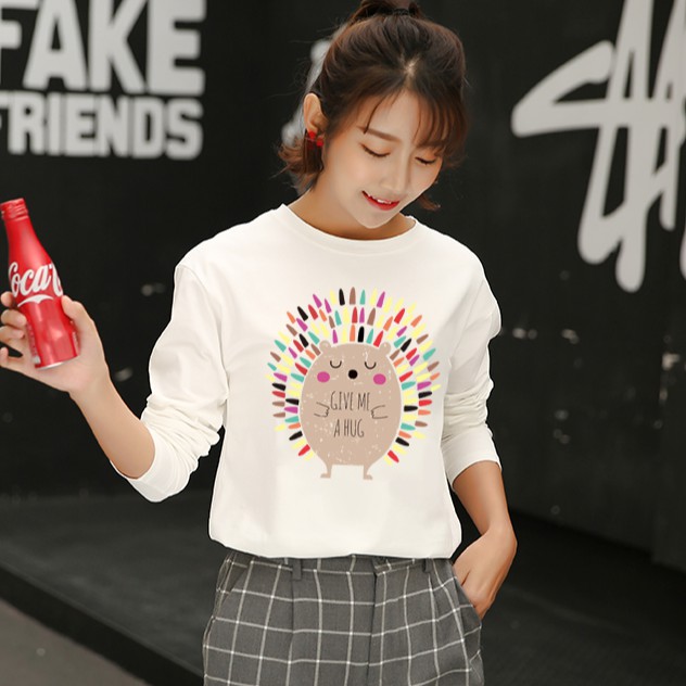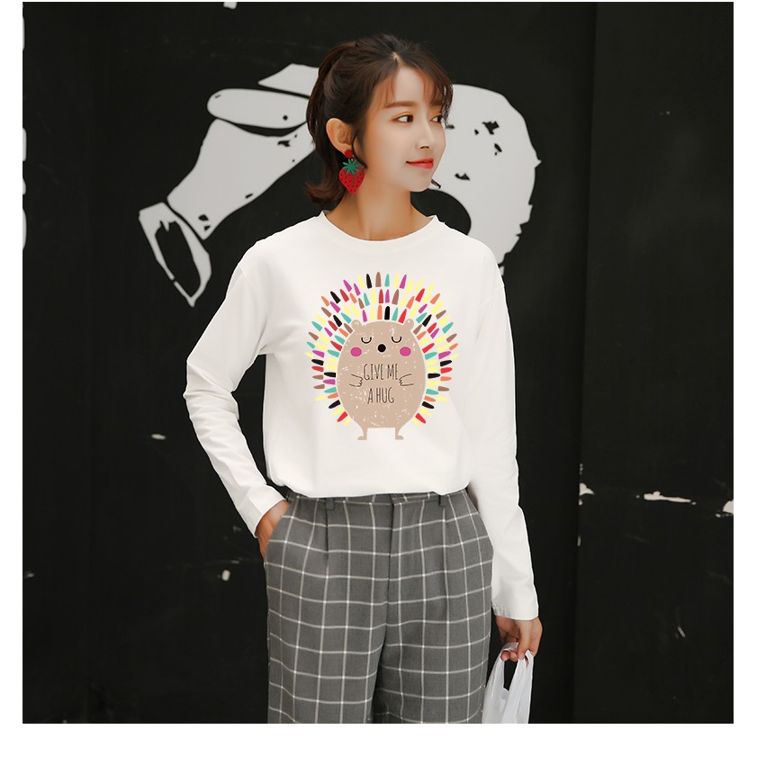 現貨 情侶裝 長袖T恤 情侶T 圓領純棉T恤 MIT台灣製【YCL661】彩色卡通刺蝟 24小時快速出貨