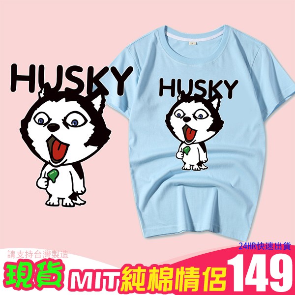 現貨 情侶裝 潮T 班服 情侶t 純棉短t 台灣製造【YC656-14】狗狗大集合 哈士奇吃糖果 犬控 親子裝 客製化
