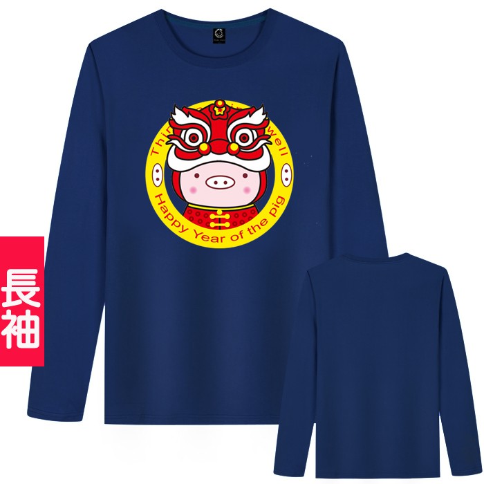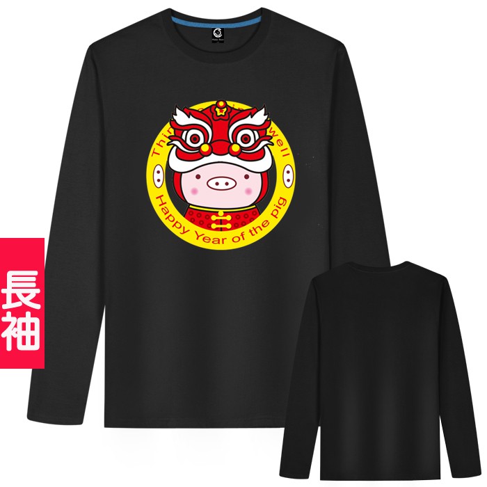 情侶裝 純棉長T MIT【YCL680】長袖 豬年 小豬戴舞獅帽 班服 艾咪e舖 配對成對 24小時快速出貨