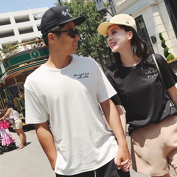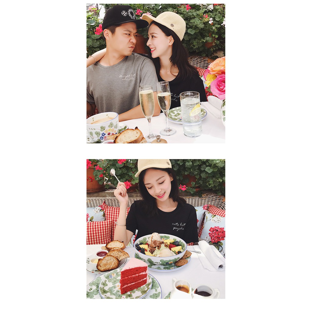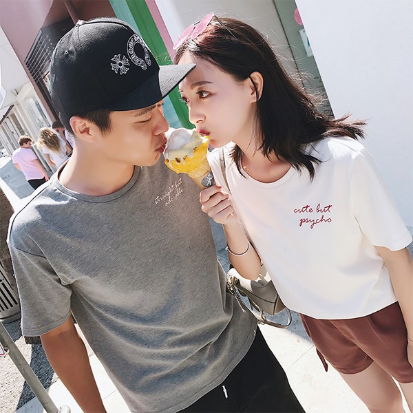潮T 文字T 情侶T 情侶裝 純棉短T MIT台灣製【Y0733】短袖-草寫左胸cute 可單買 男女可穿