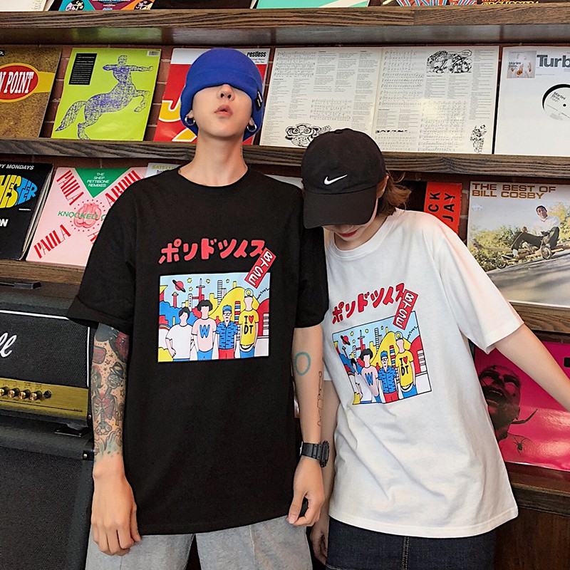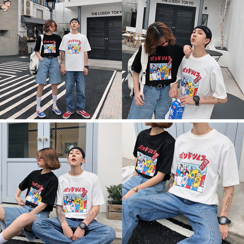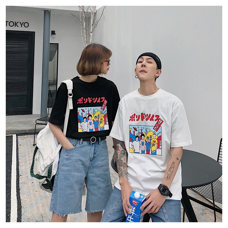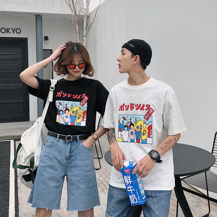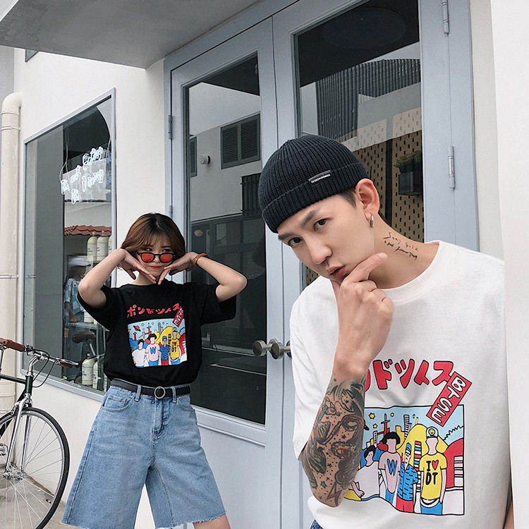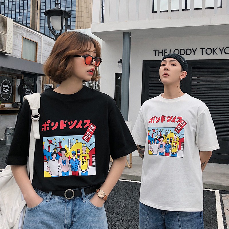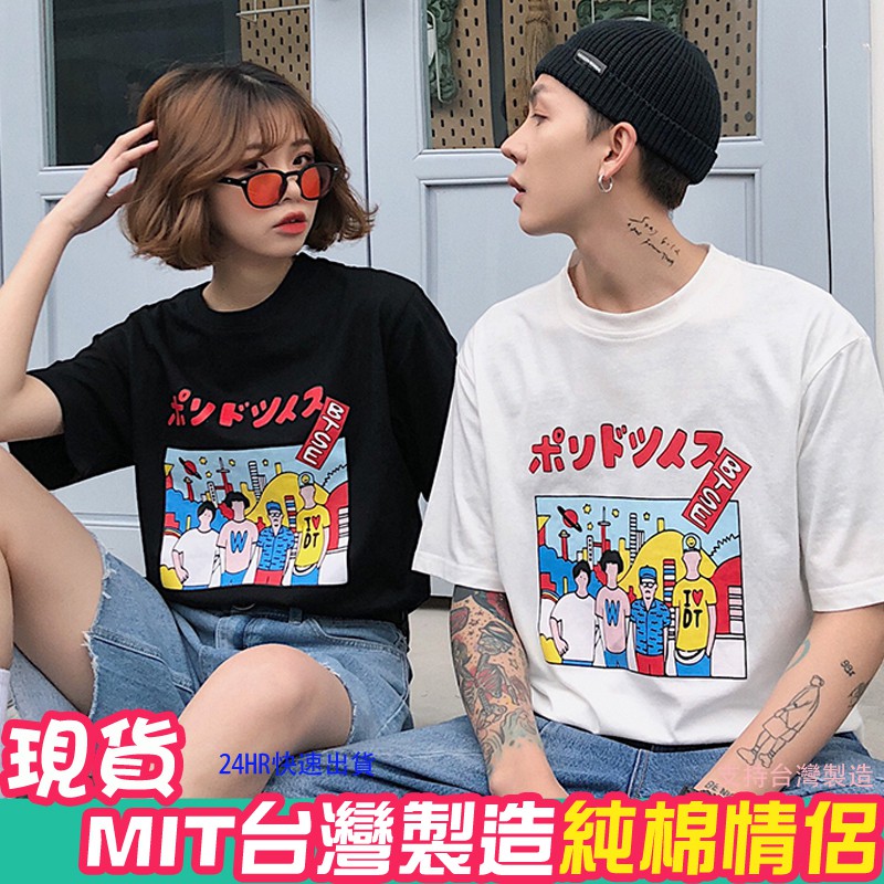 現貨 情侶裝 潮T 班服 情侶t 純棉短t 【YC601】短袖 日文風景方框四小人台灣製造 快速出貨 加大尺碼 客製化