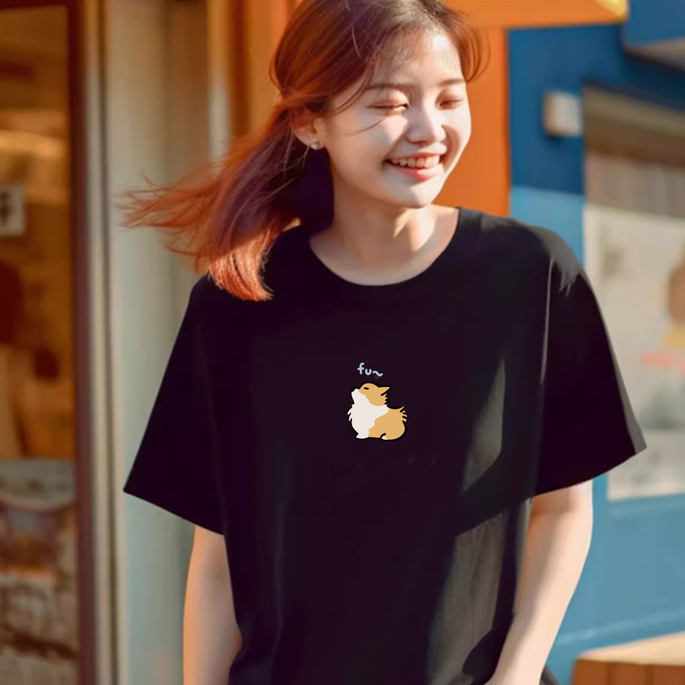 S~XL 左胸 FU~柯基 純棉 短T 情侶T【Y0945】MIT 情侶裝 快速出貨 短袖T恤 加大尺碼 短袖 團體服