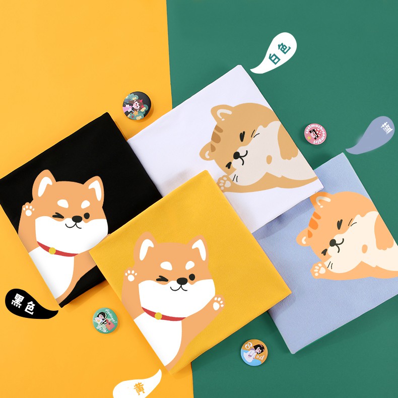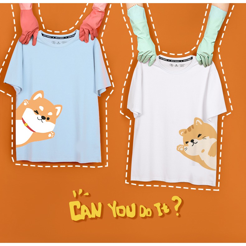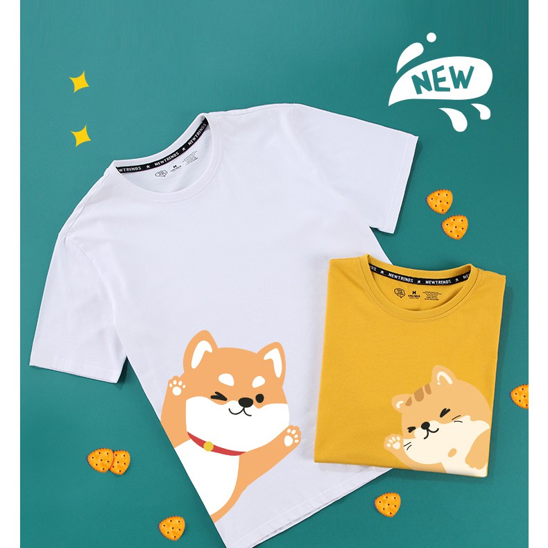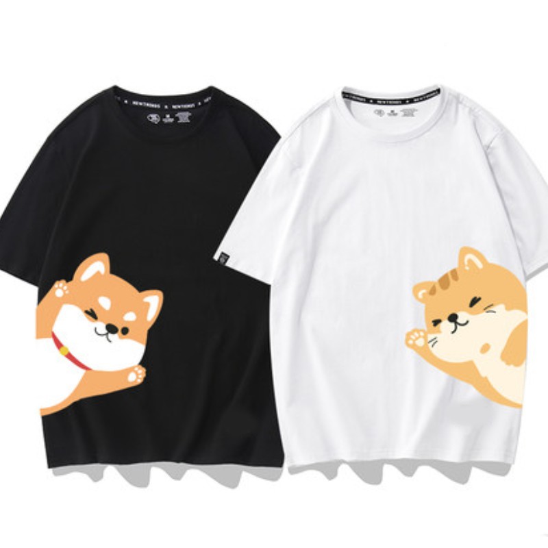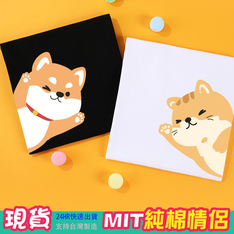 情侶裝 潮T 班服 情侶t 純棉短t萌趣情侶柴犬 貓咪打招呼 台灣製造快速出貨 加大尺碼 【Y0884-5】
