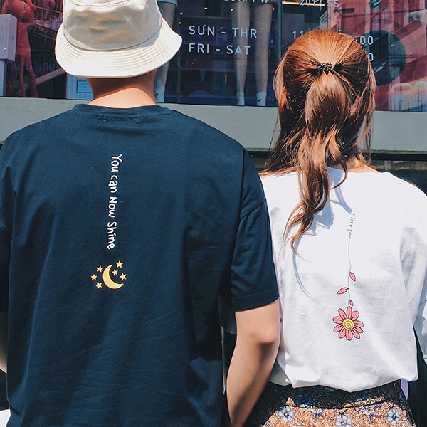 現貨 情侶T 客製化 情侶裝 純棉MIT 班服【Y0641】短袖 簡約背後月亮花朵 艾咪E舖 快速出貨 潮T 文青系列