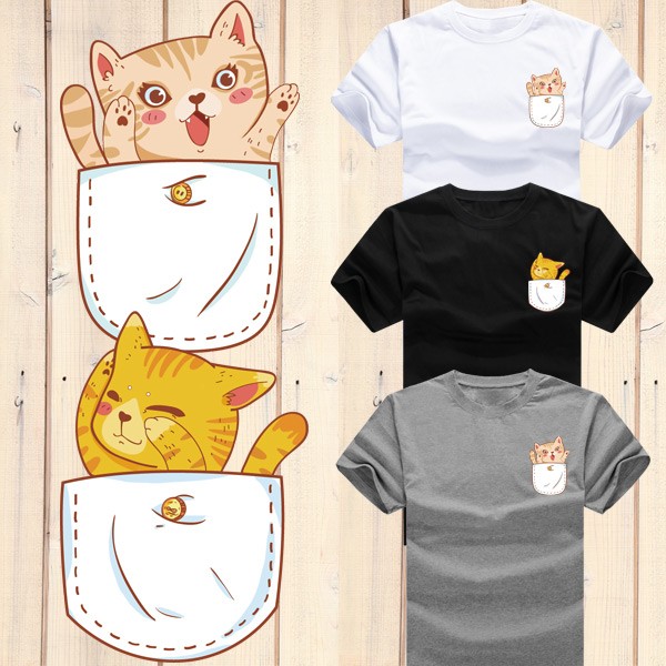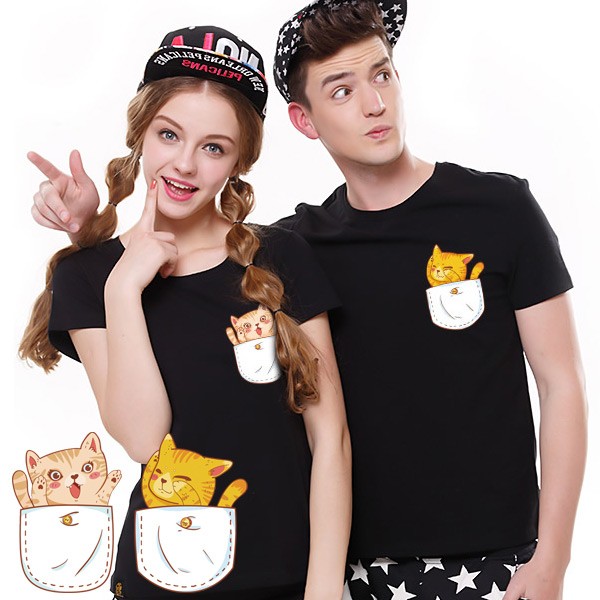 快速出貨 獨家配對情侶裝.客製化.T恤.最佳情侶裝.純棉短T.MIT台灣製.班服.口袋貓【Y0034】可單買.艾咪E舖
