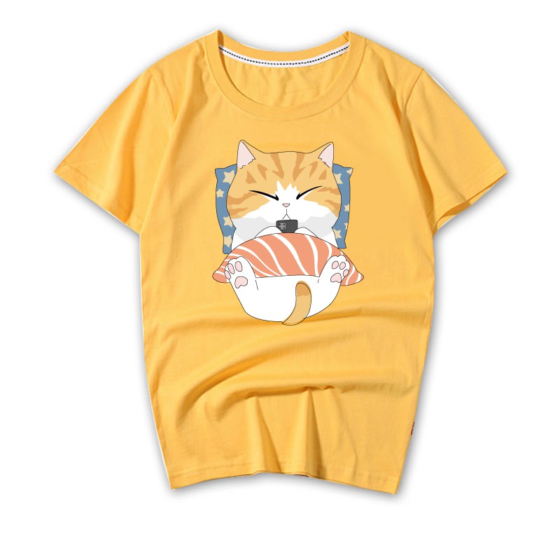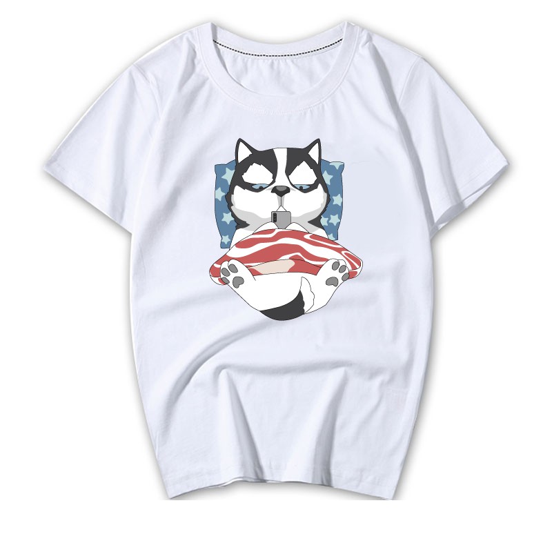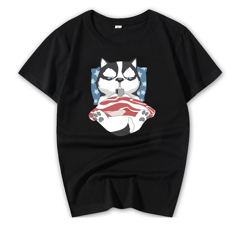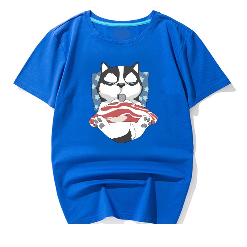 情侶裝 潮T 班服 情侶t 純棉短t 萌寵 橘貓 哈士奇 蓋被被 玩手機 MIT 快速出貨加大尺碼 【YC742-5】