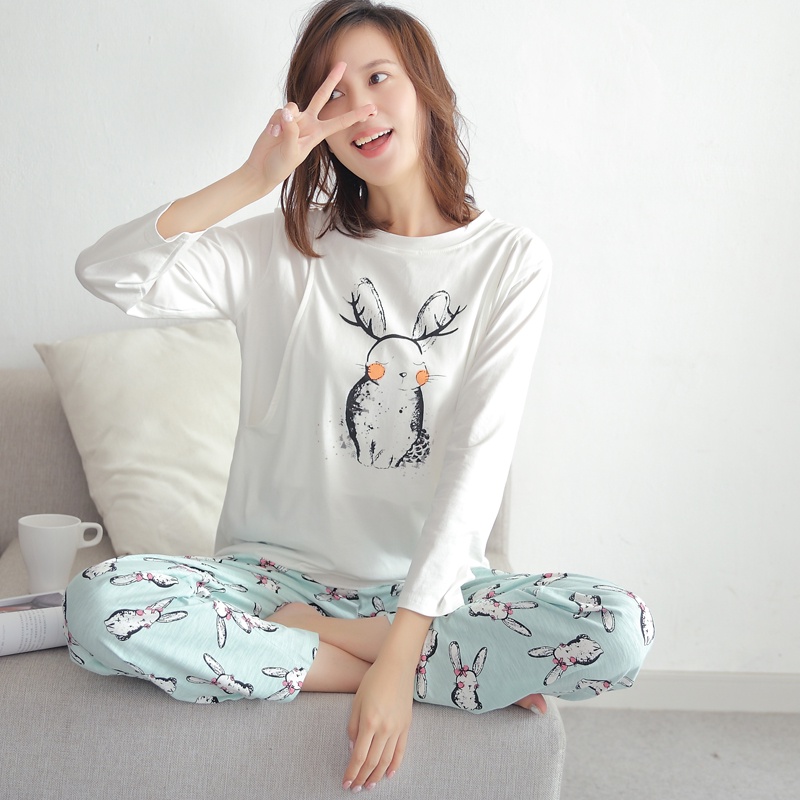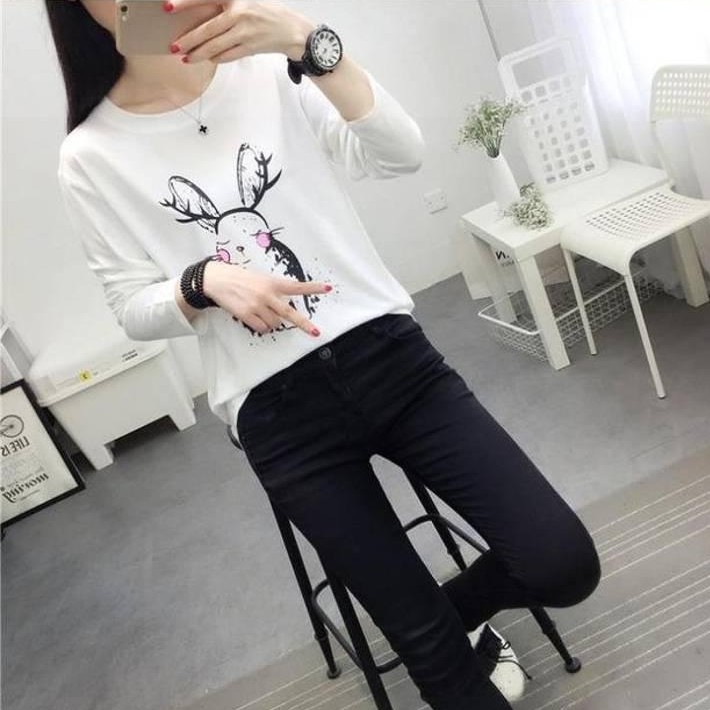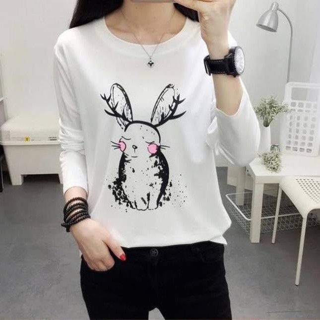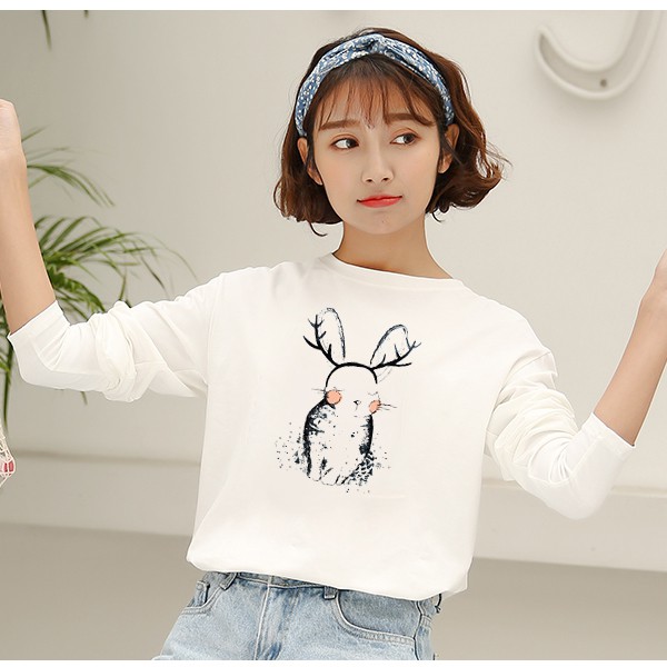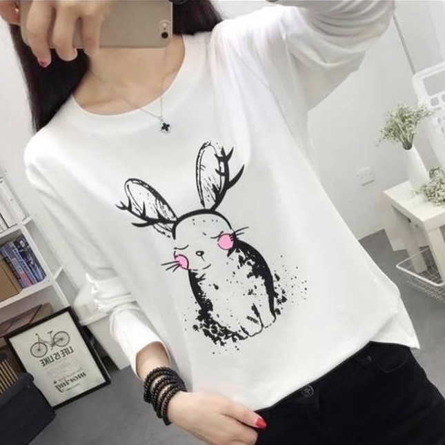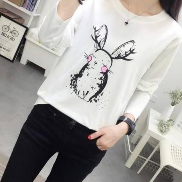 潑墨兔子 現貨 S~XL 情侶裝 純棉長T 台灣製 MIT【YCL754-3】長袖 可愛 艾咪e鋪 24小時快速出貨