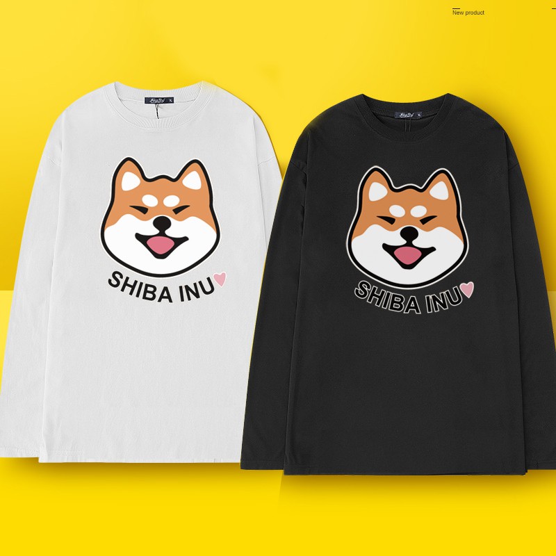 台灣製 純棉 現貨 長袖T恤 情侶裝 情侶T 潮T 圓領純棉T恤 MIT【YCL656-9】旺星人 微笑柴犬 快速出貨