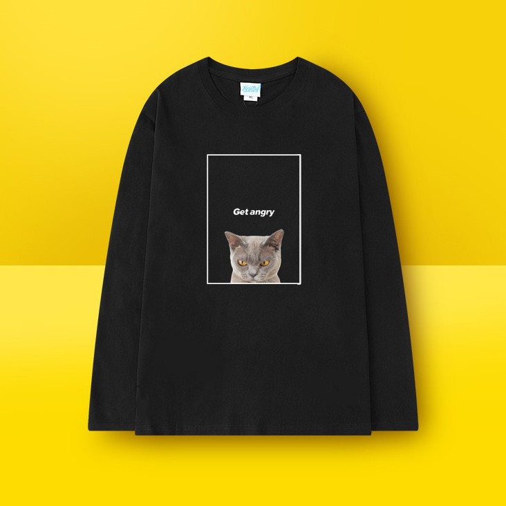 情侶裝 純棉長T 台灣製 MIT【YCL754-9】長袖 方框生氣貓 害怕狗 可愛 艾咪e鋪 快速出貨