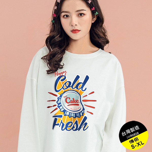 情侶裝 純棉長袖T S~XL號 MIT台灣【YCL736】長T cold瓶蓋fresh 班服 團體服 艾咪e舖 快速出貨