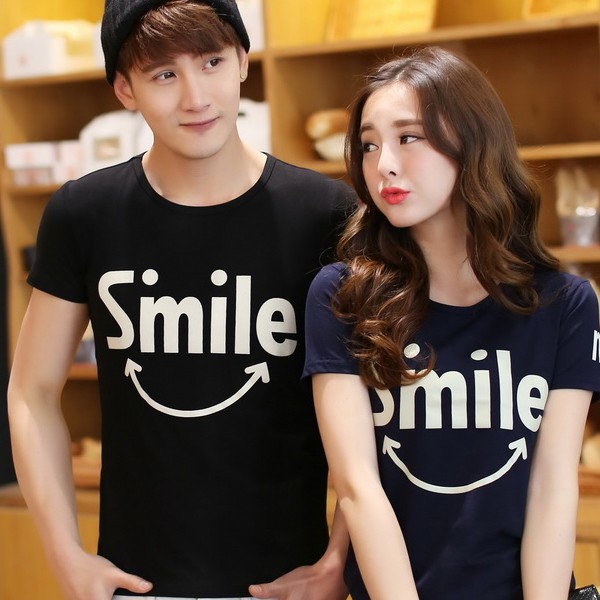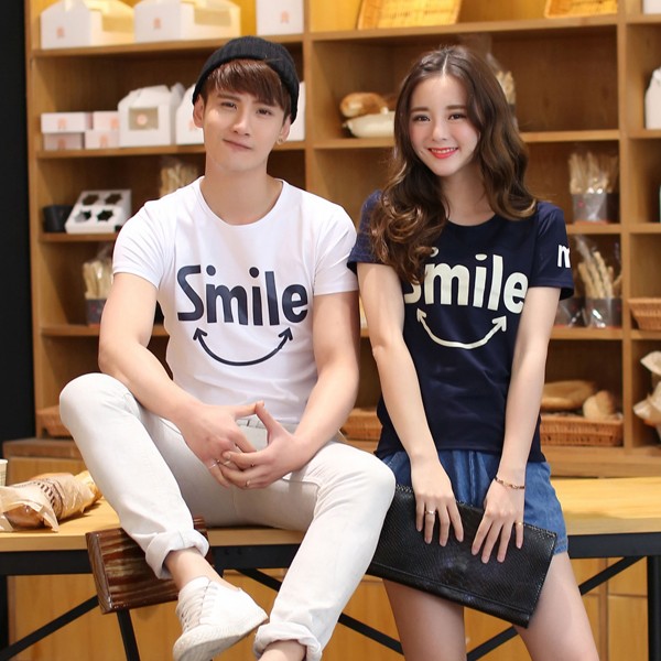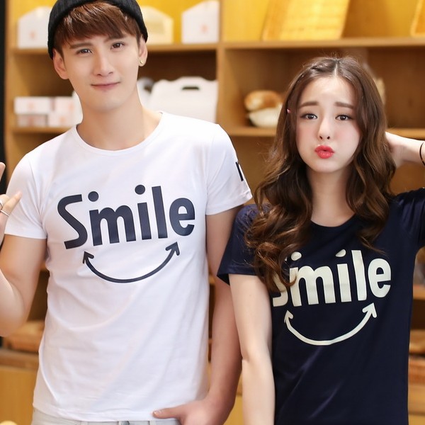 長板T連身裙.情侶裝.班服.獨家配對情侶裝.客製化.純棉短T.箭頭微笑SMILE【Y0319】可單買.艾咪E舖