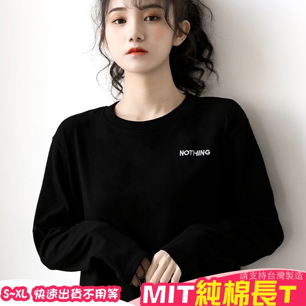 現貨 S~XL 長袖T恤 情侶裝 純棉長T 台灣製【YCL754-10】長袖 左胸NOTHING 快速出貨不用等
