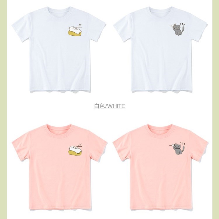 情侶裝 潮T 班服 情侶t 純棉短t 萌寵 白貓 灰貓 傳聲聽筒器 肚子GU 快速出貨加大尺碼 【YC742-8】