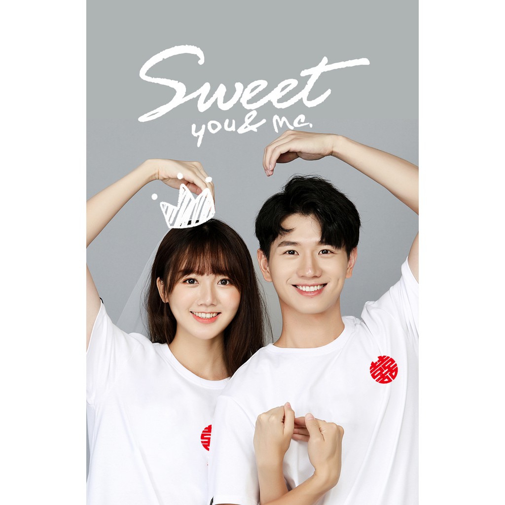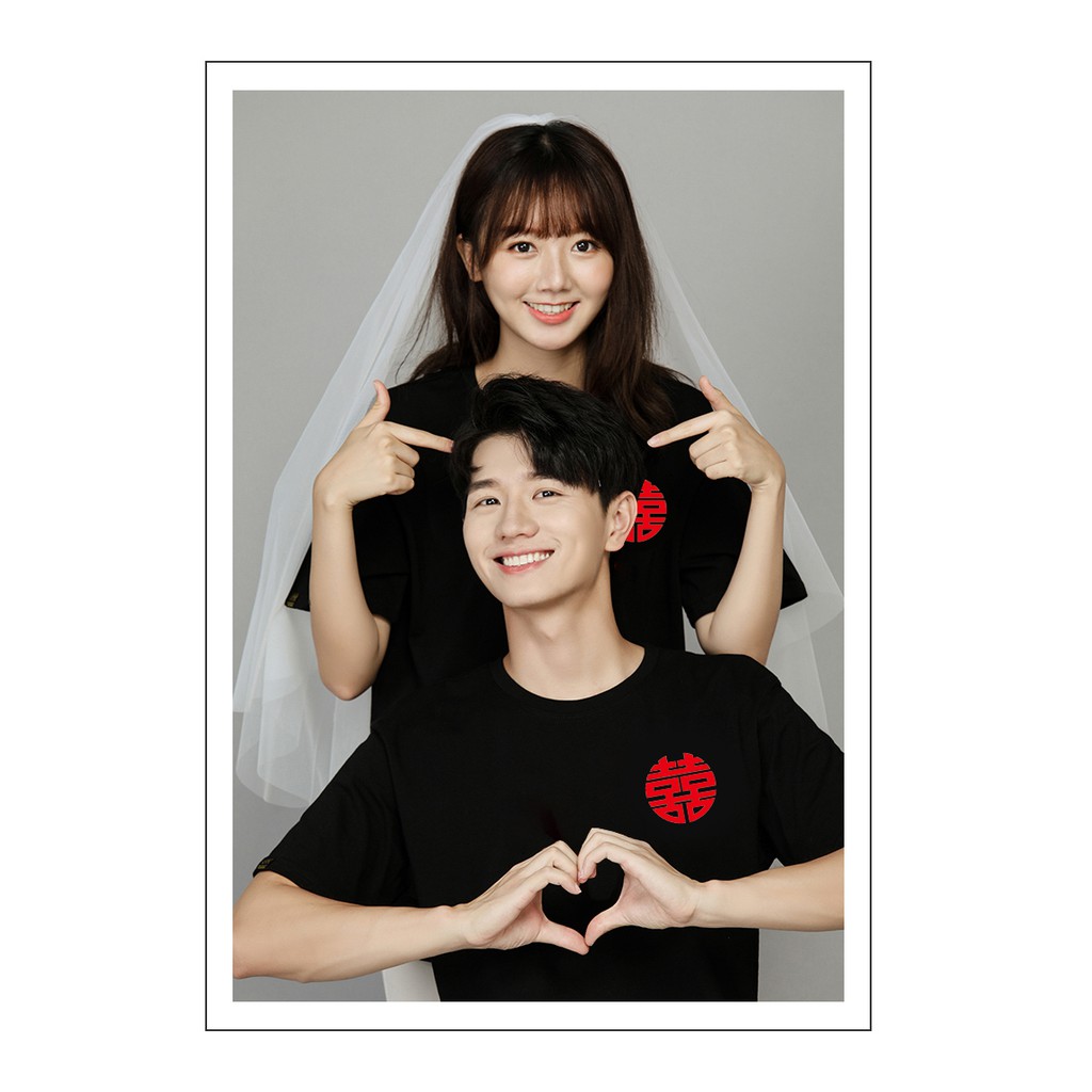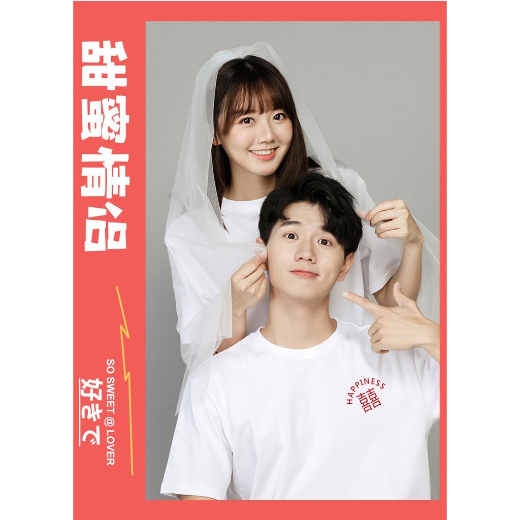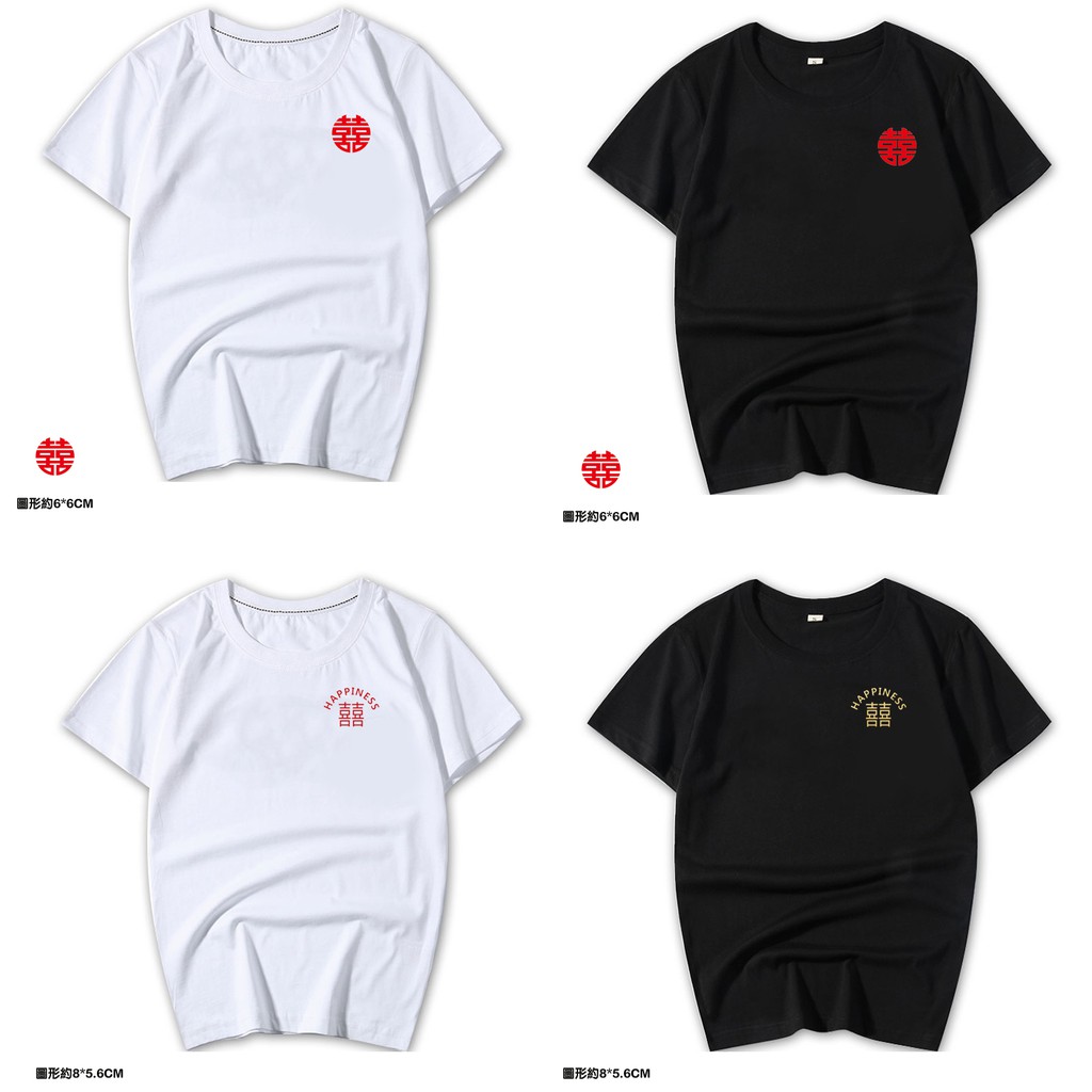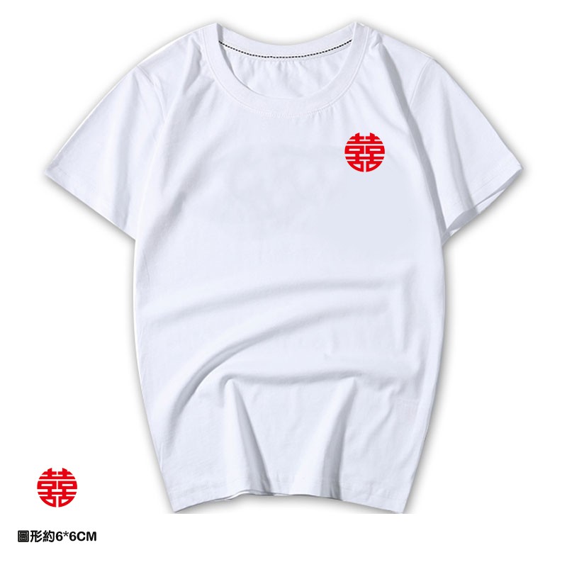情侶裝 潮T 班服 情侶t 純棉短t 短袖 【Y0898-21】左胸 紅圓囍 HAPPINESS金囍 紅囍 台灣製造