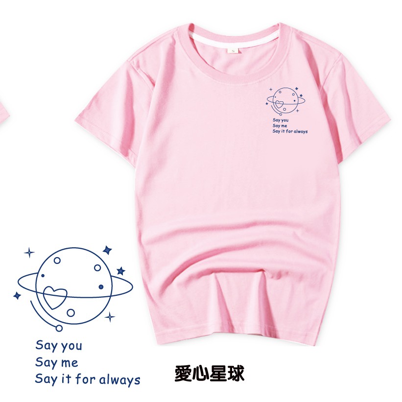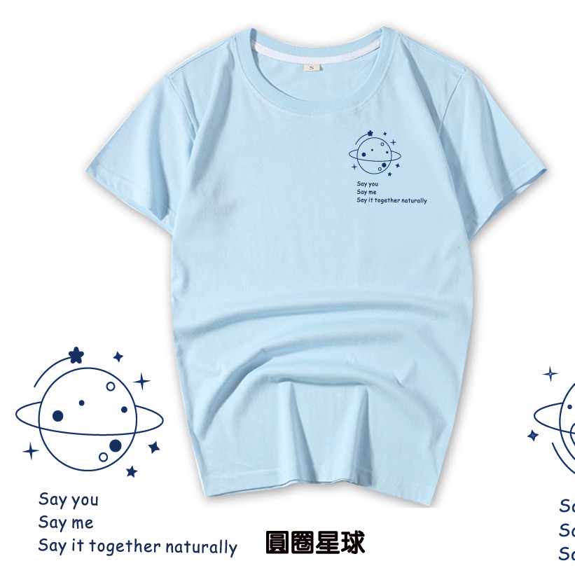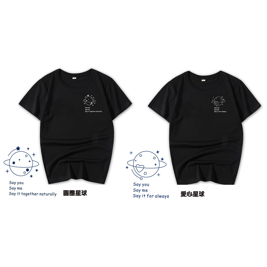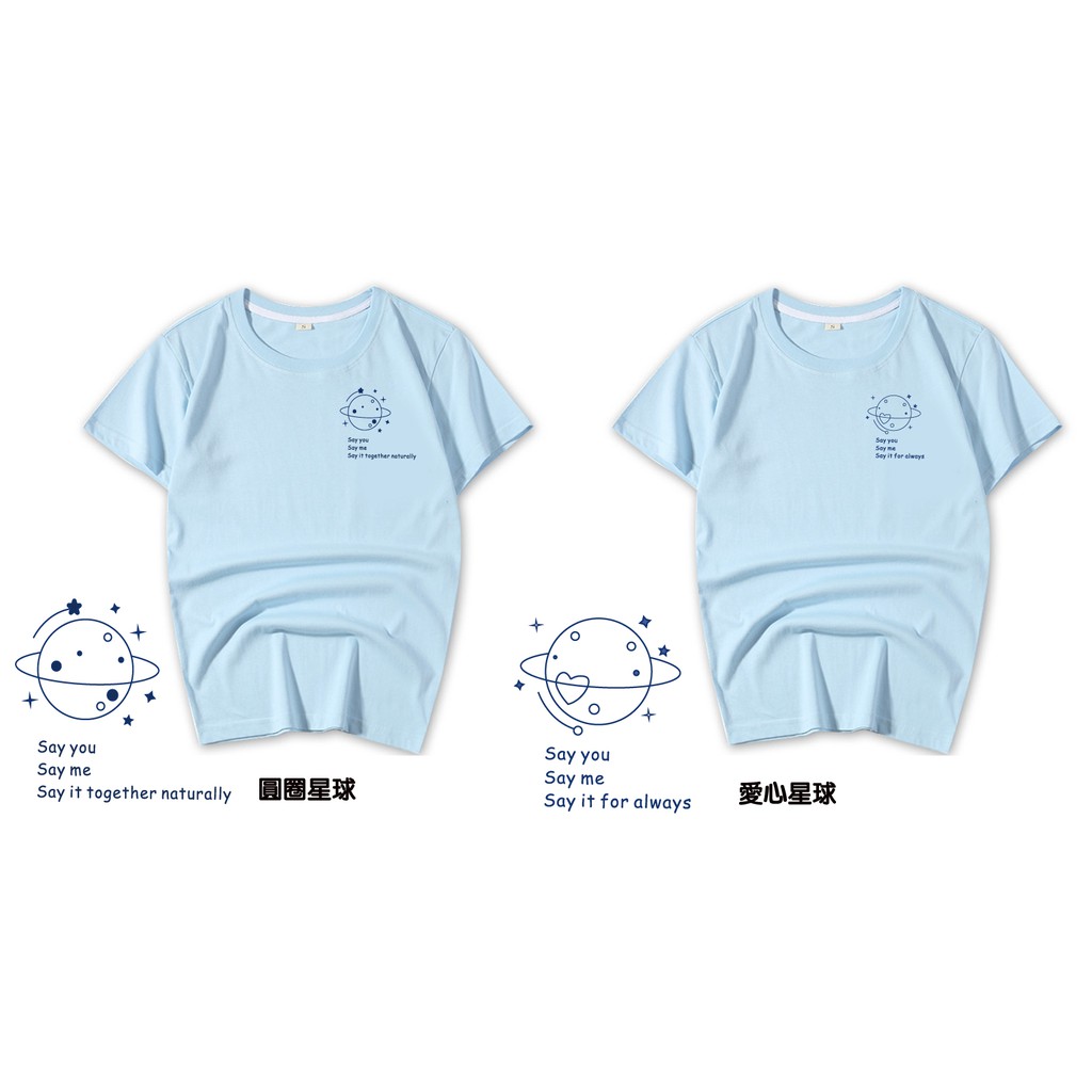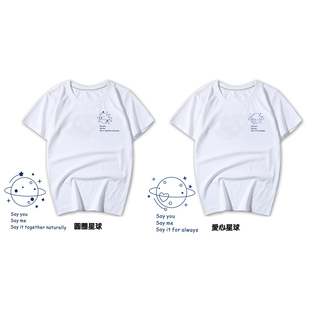 情侶裝 潮T 班服 情侶t 純棉短t 短袖 【Y0898-19】單純線條愛心星球 台灣製造 快速出貨不用等 親子裝