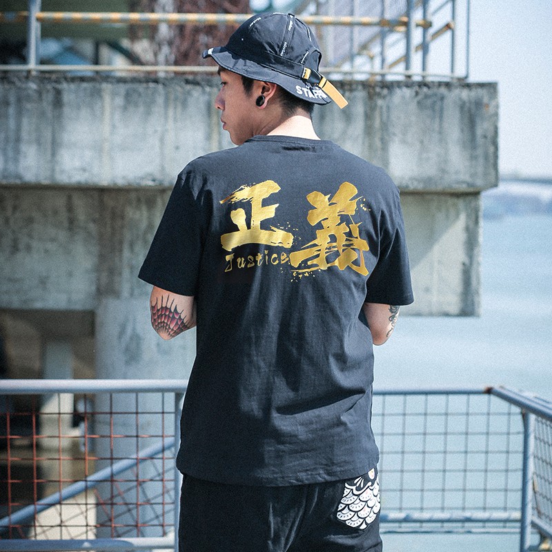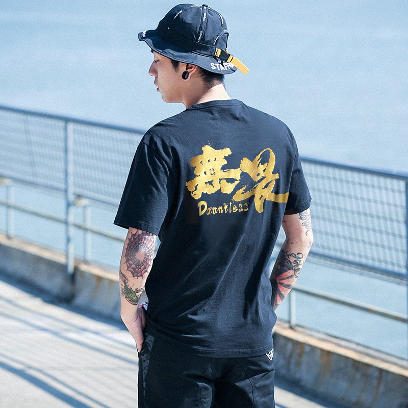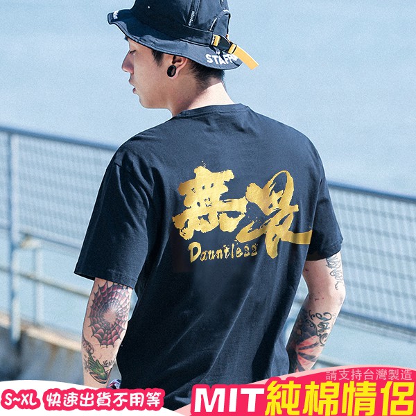 情侶裝 潮T 班服 情侶t 純棉短t 短袖 【Y0898-29】背後燙金無畏 燙金正義 台灣製造 快速出貨不用等 親子裝