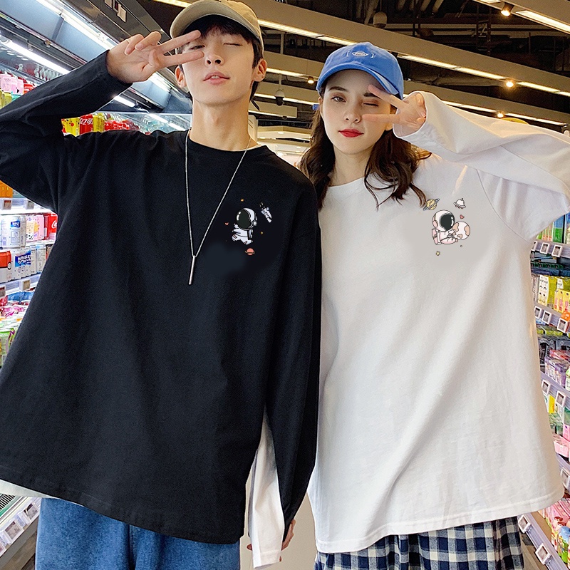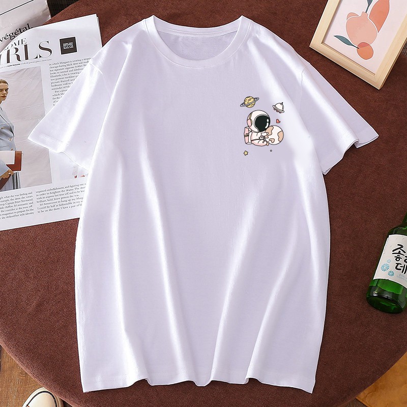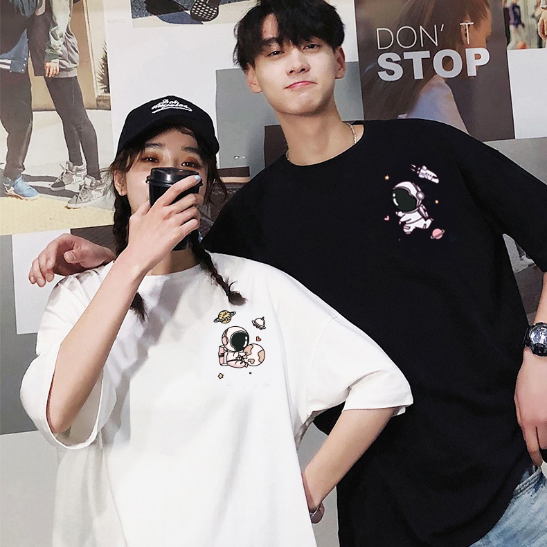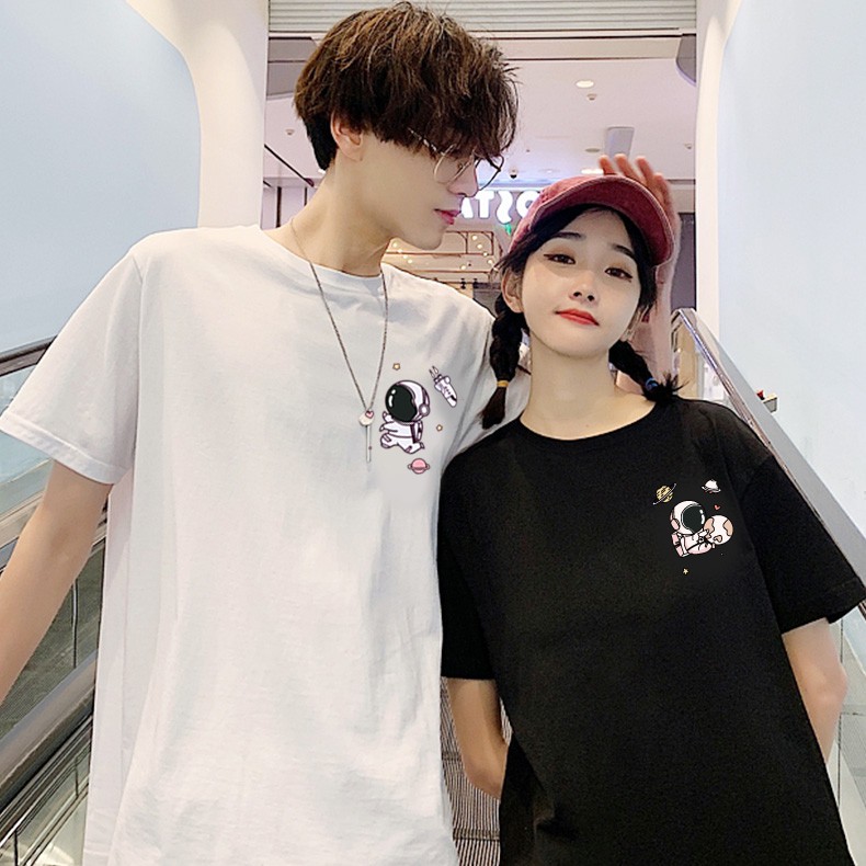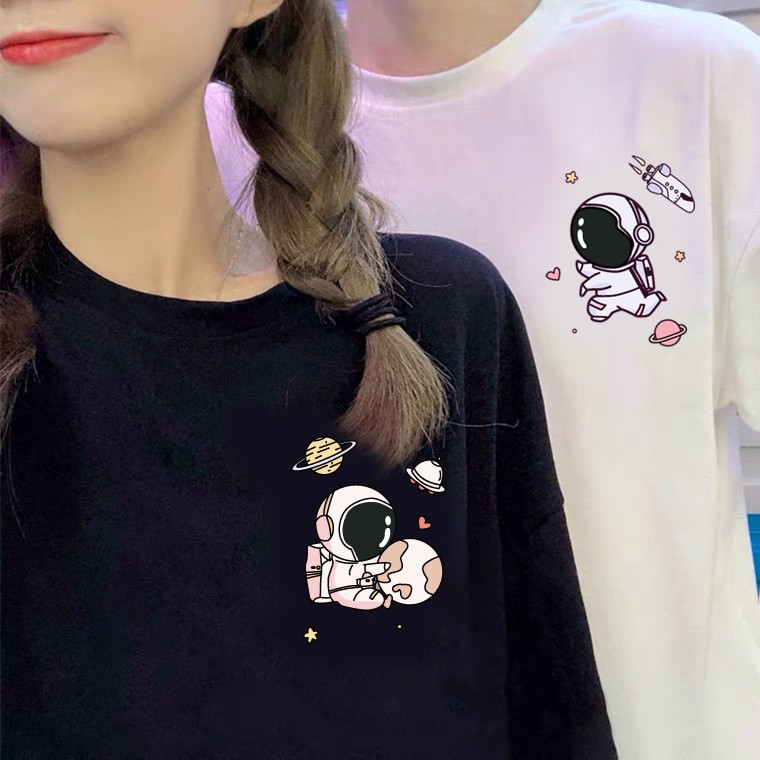 情侶裝 潮T 班服 情侶t 純棉短t 短袖 雙色太空人 女抱球 台灣製造 快速出貨 加大尺碼 【YC742-15】