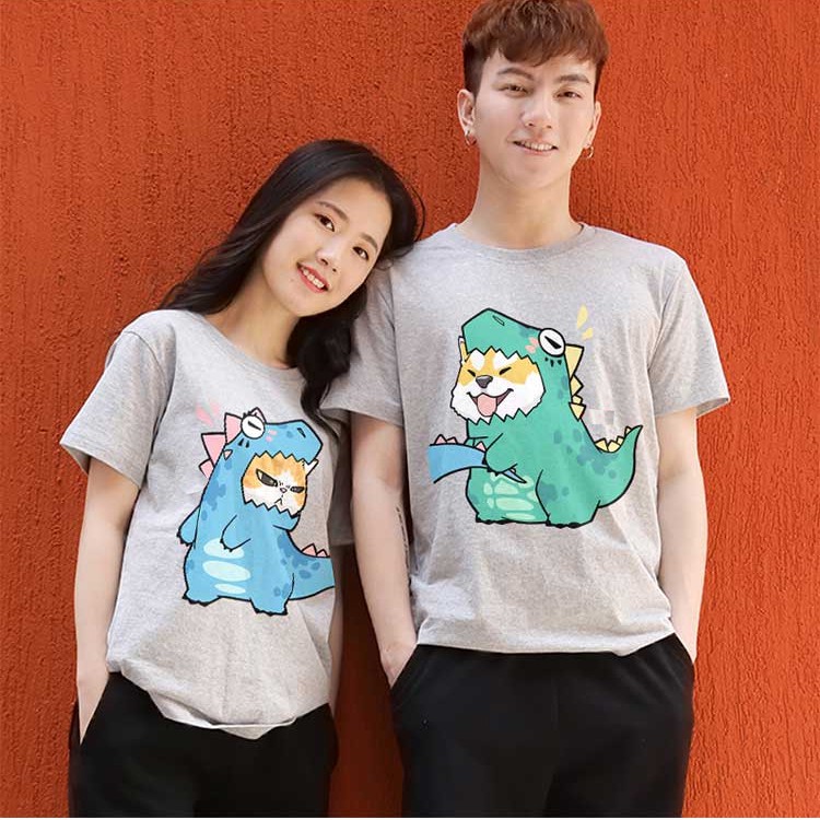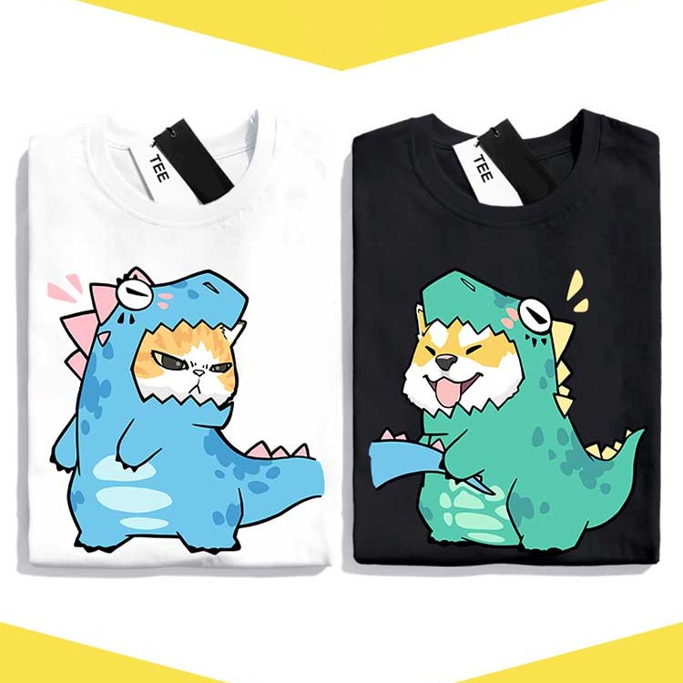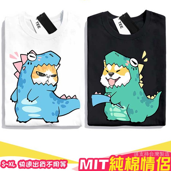 情侶裝 潮T 班服 情侶t 純棉短t 萌寵萌寵 暴龍柴犬 拉尾巴 暴龍貓 MIT 快速出貨加大尺碼 【YC742-6】