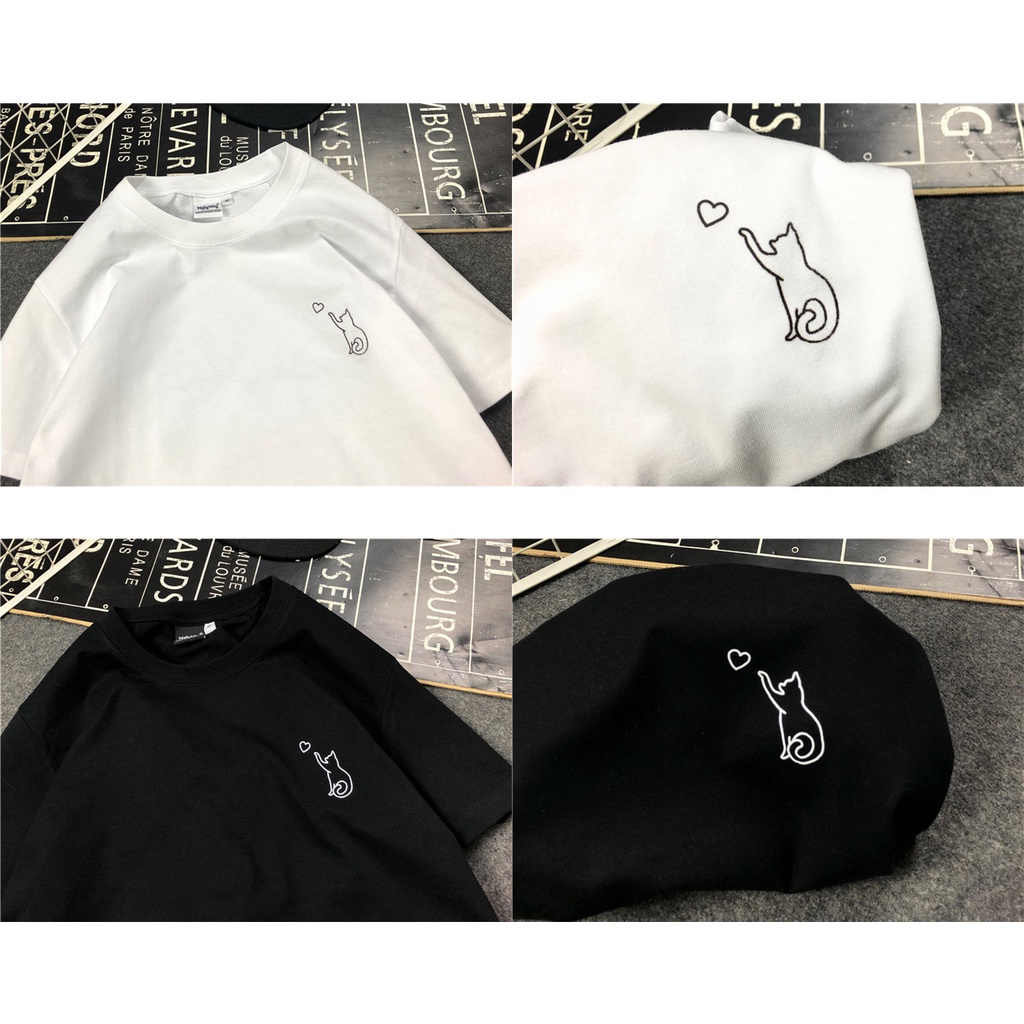 簡約線條貓咪 貓手舉高碰心 日文貓線條 現貨 情侶裝 台灣製【Y0899-23】情侶T 團體服 快速出貨
