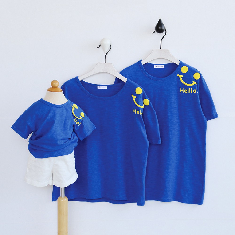 肩膀HELLO簡約笑臉 純棉 現貨 110~XL 親子裝 台灣製【Y0899-6】情侶T 團體服 快速出貨 加大尺寸
