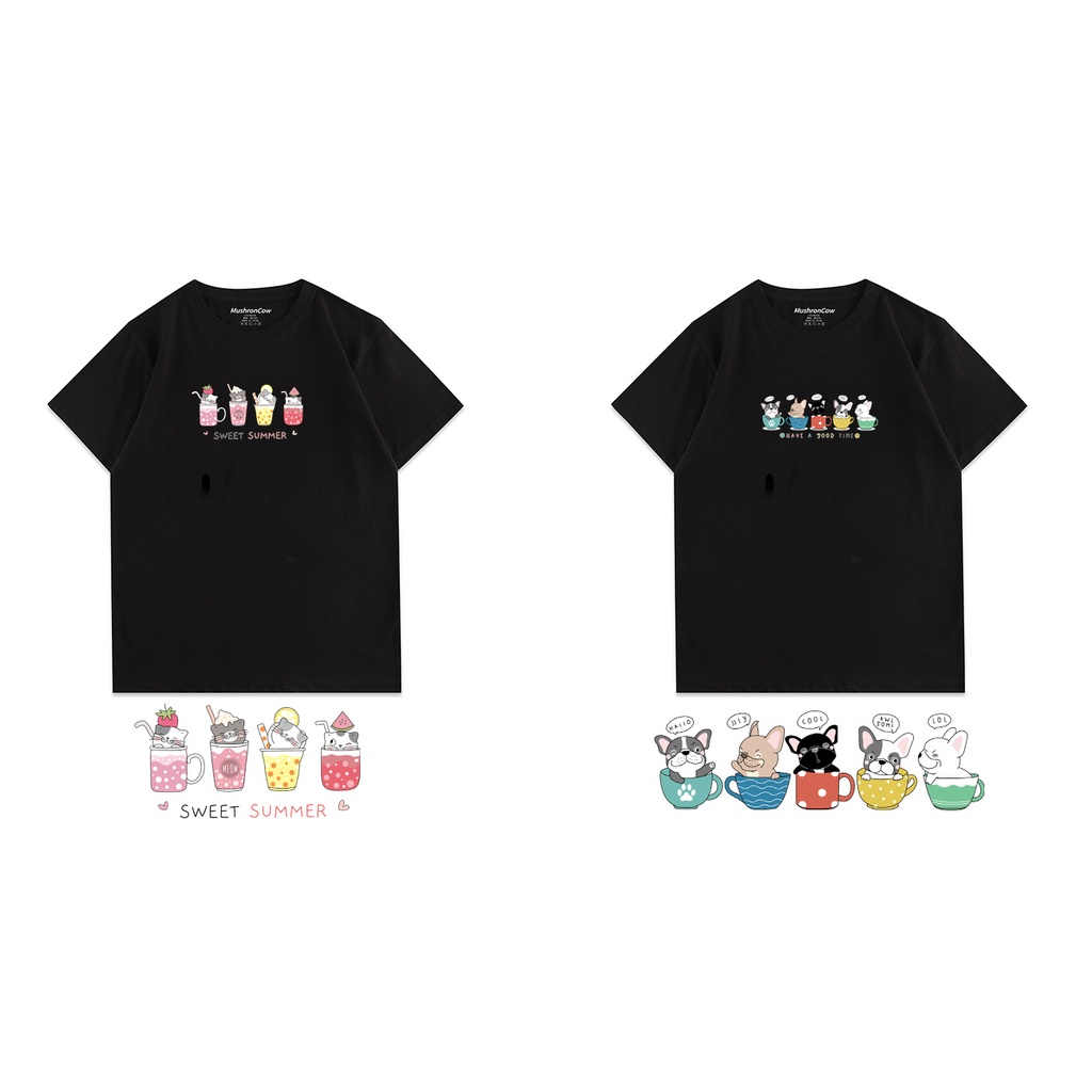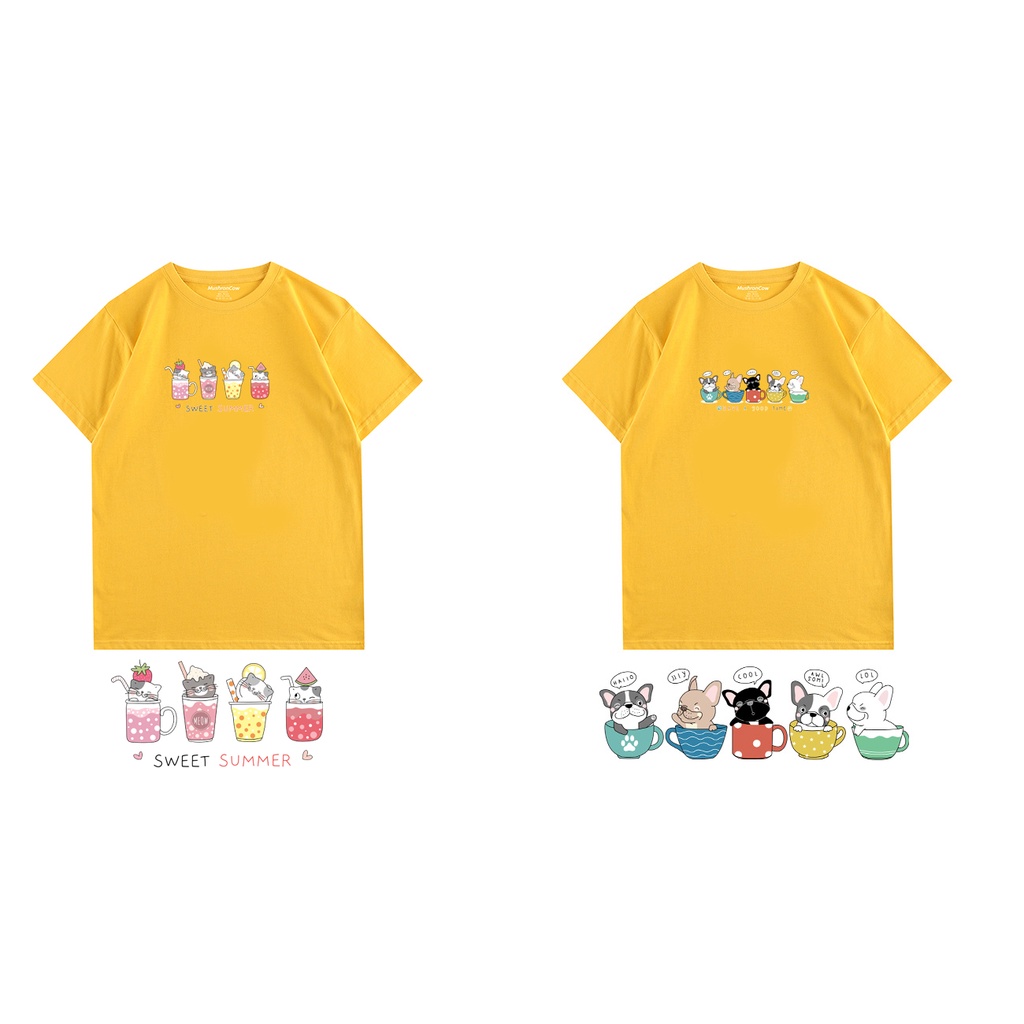 杯子貓咪 咖啡狗狗 短袖 純棉 現貨 S~XL 情侶裝 台灣製【YC757】情侶T 班服 快速出貨