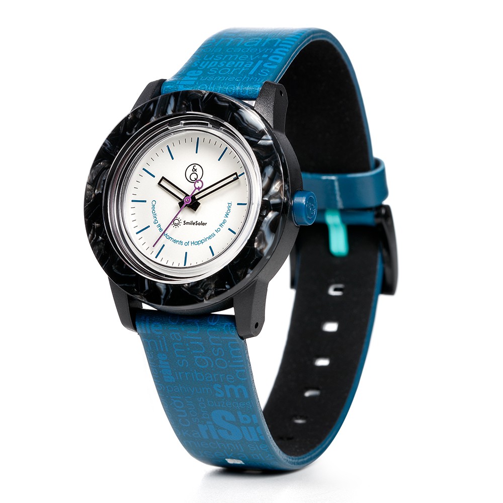 Q&Q SmileSolar 巴賽爾系列太陽能手錶-靛黑藍Small/35mm
