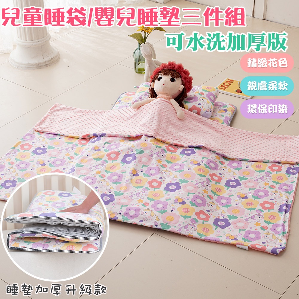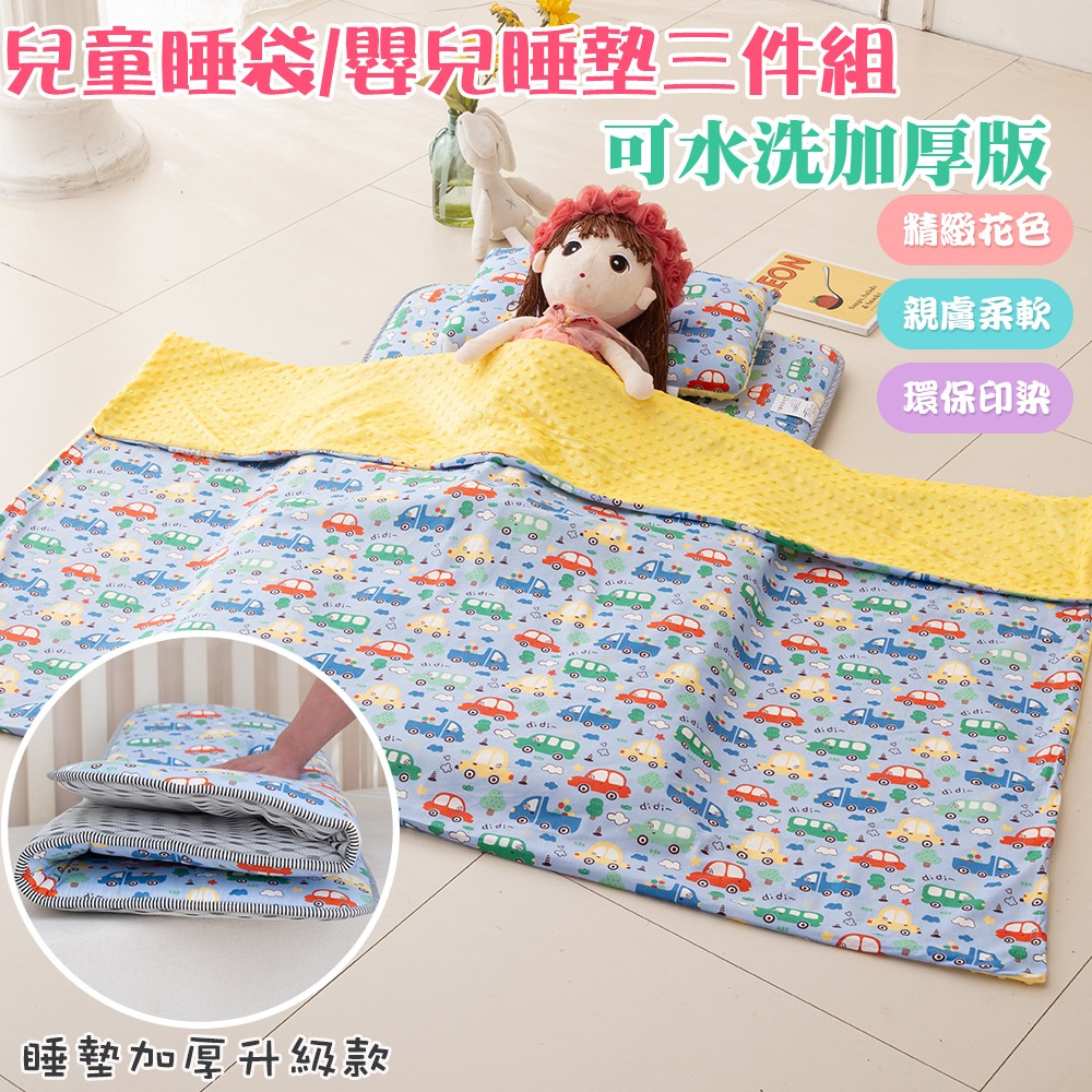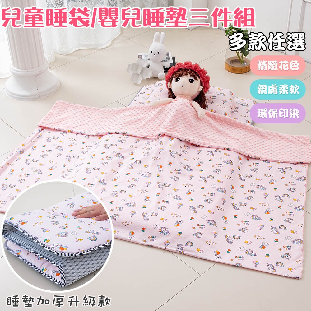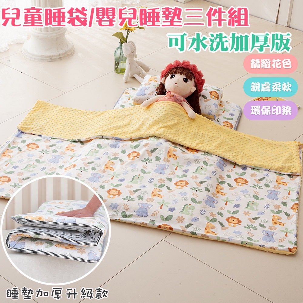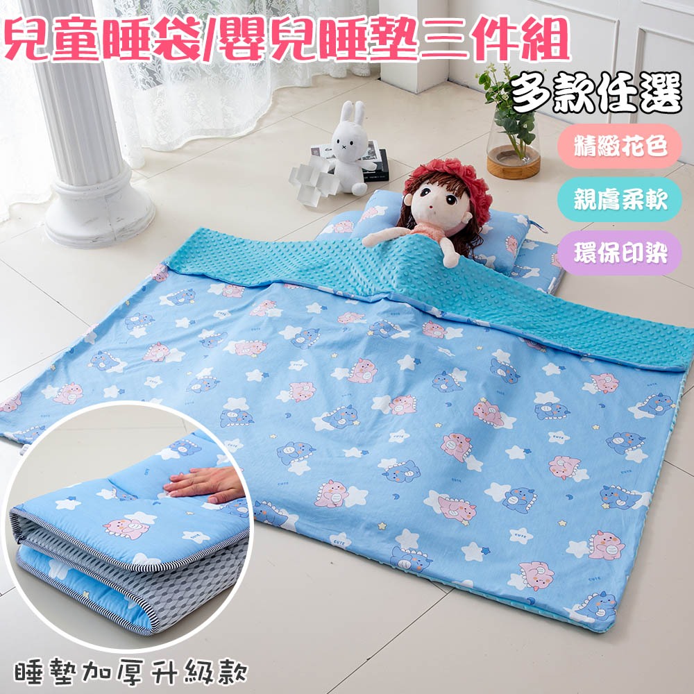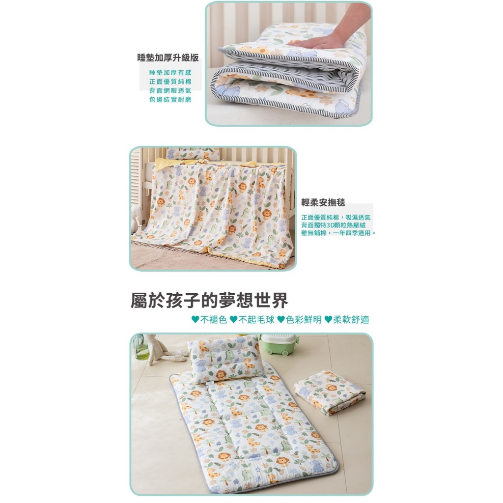 純棉加厚嬰兒床墊/兒童睡墊+安撫毯+安撫童枕 睡袋三件組(小夥伴)[艾拉寢飾][滿額免運]
