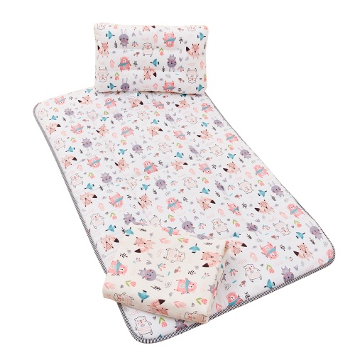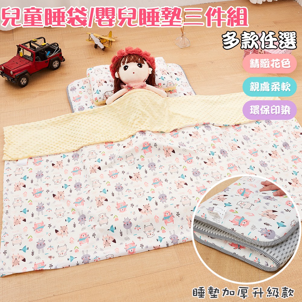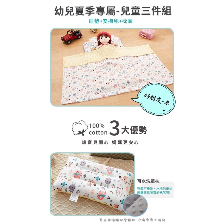 純棉加厚嬰兒床墊/兒童睡墊+安撫毯+安撫童枕 睡袋三件組(好朋友-米)[艾拉寢飾][滿額免運]