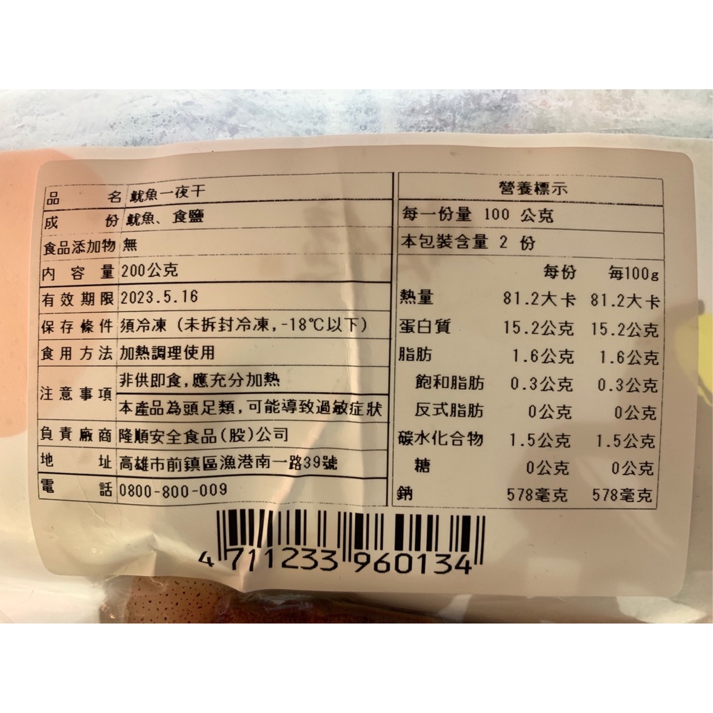 【順億】阿根廷魷魚一夜干 (200 g/尾) 真空袋包裝