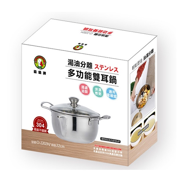 DOLEE 鵝頭牌 304油湯分離多功能雙耳鍋2.7L CI-2202H