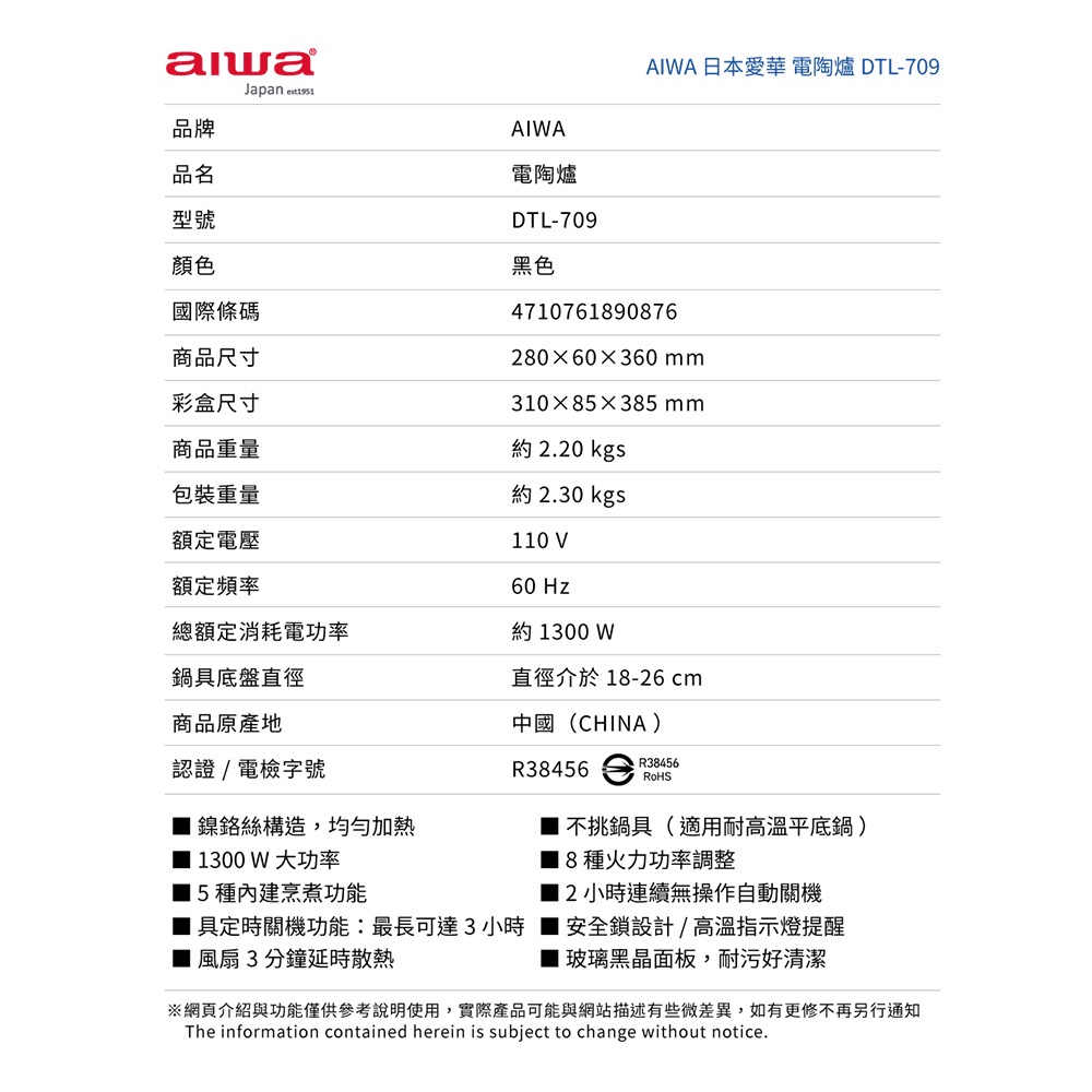 AIWA愛華 不挑鍋大功率電陶爐 DTL-709