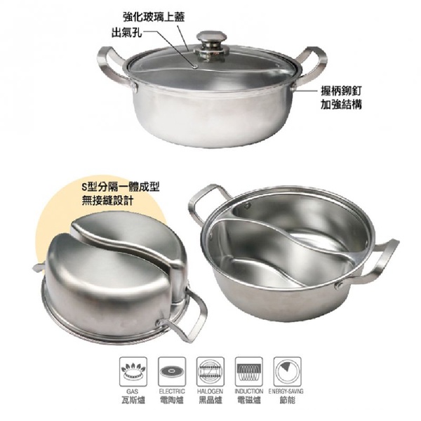 妙管家 304不鏽鋼一體成型鴛鴦鍋30cm HKPG-1126