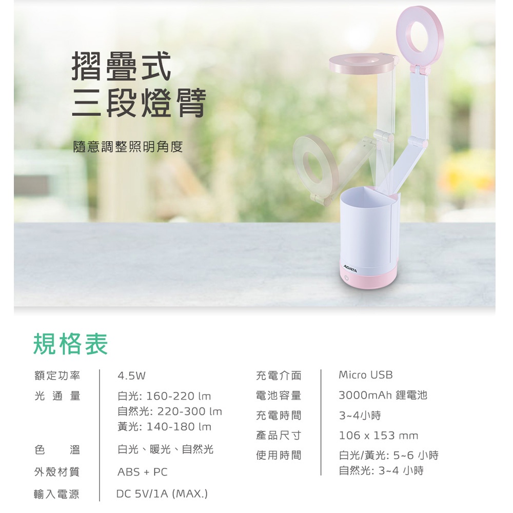 威剛ADATA LED-筆筒無線LED檯燈 LDK303
