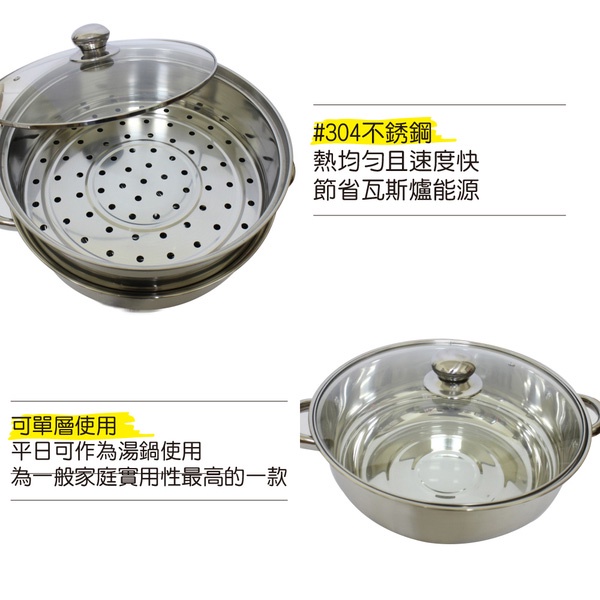禮品一番 304不鏽鋼雙耳蒸鍋 KA-S320A-1
