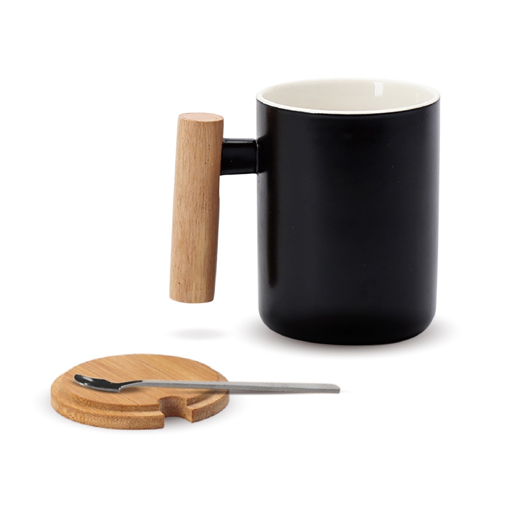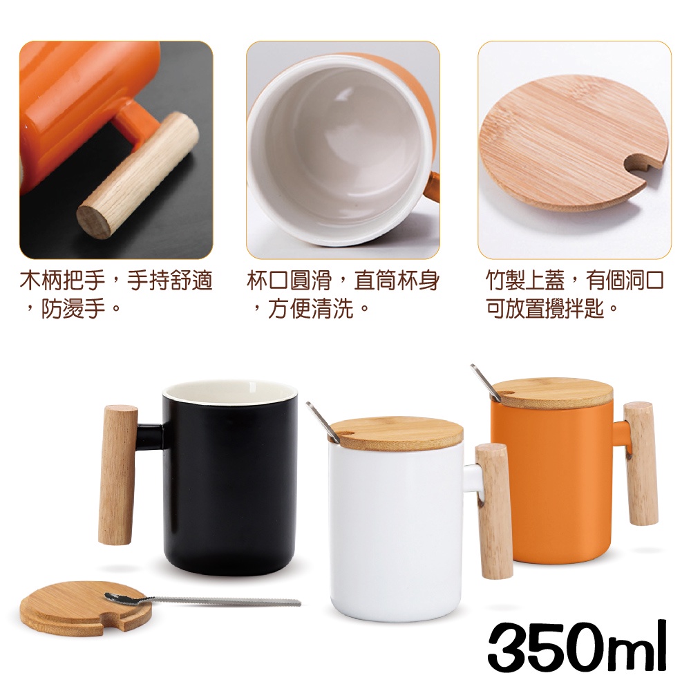 LEMANI 高質感木柄馬克杯350ml(附竹蓋/湯匙)通過SGS檢測