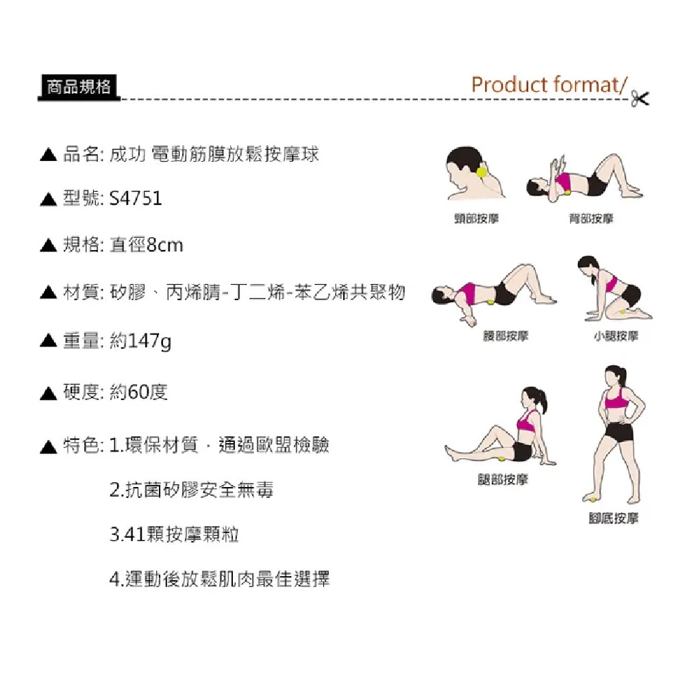 成功SUCCESS 電動筋膜放鬆按摩球(硬度60) S4751