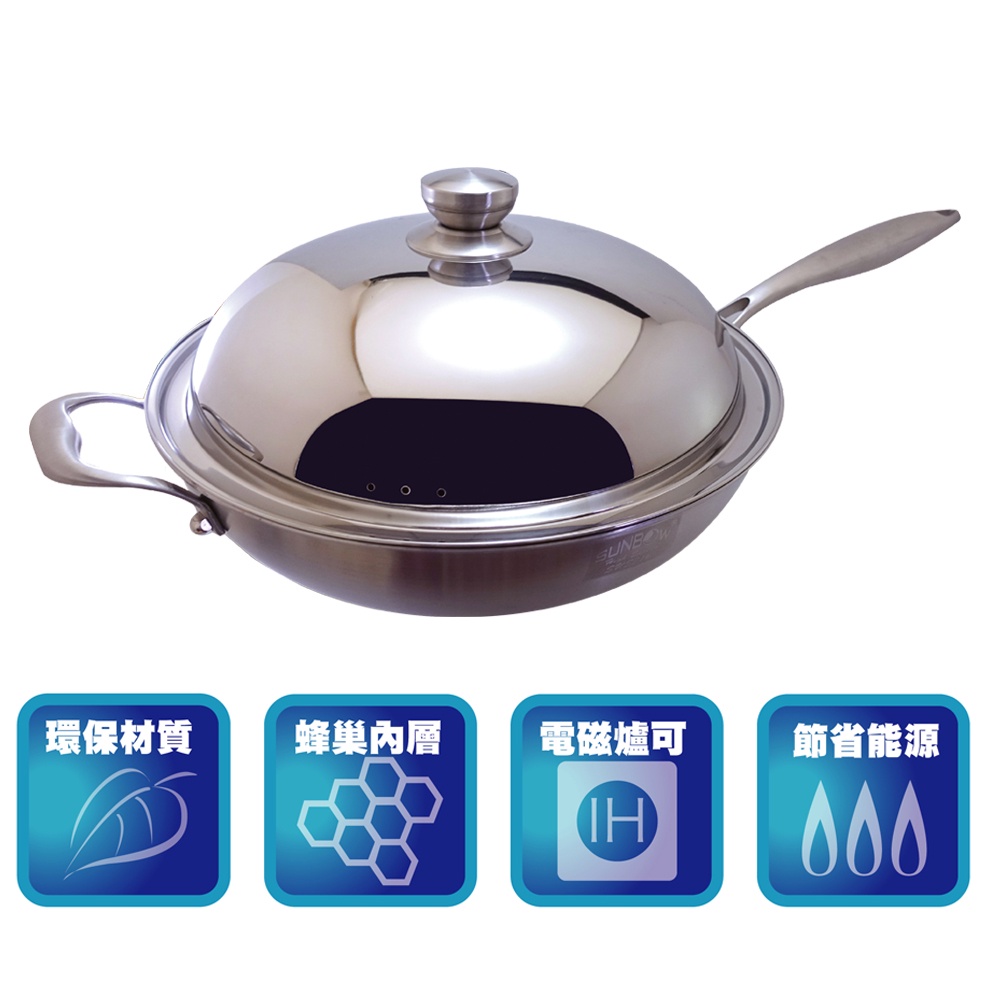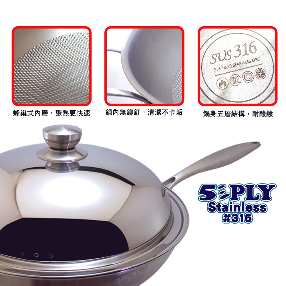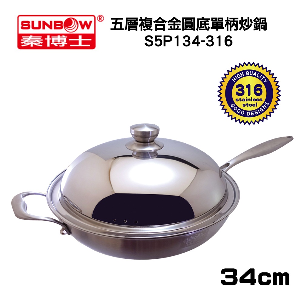 秦博士 316五層複合金圓底單柄炒鍋34cm附蓋 S5P134-316