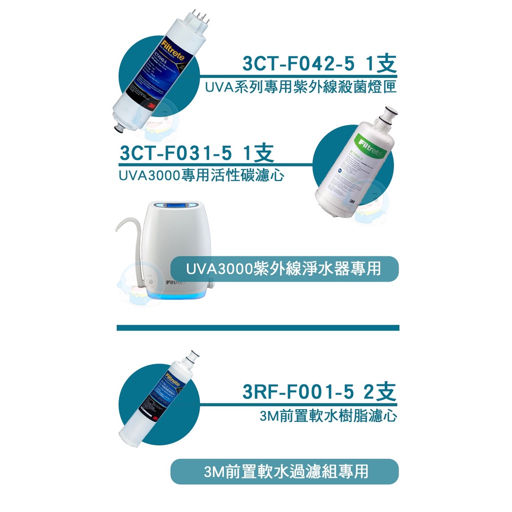 3M UVA3000/UVA-3000紫外線殺菌淨水器專用活性碳濾心(前置樹脂軟水濾心)共4支【台灣優水淨水生活館】