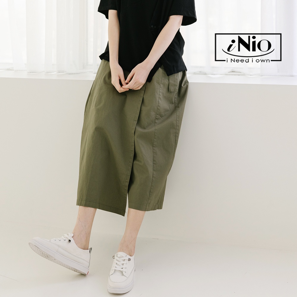 iNio衣著美學 長寬褲 現貨 假兩件 洗水棉 鬆緊腰長褲裙 寬褲裙 C2W2097