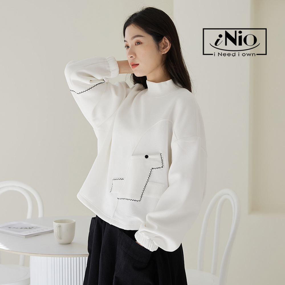 iNio衣著美學 長袖上衣 現貨 內刷毛拼接 棉質立領造型上衣 CBW1419