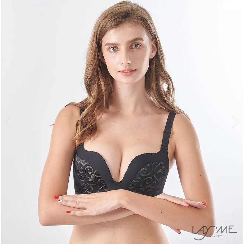 LadyMe 無鋼圈內衣-炫紋新藝-黑色成套內衣 性感內衣 集中內衣 大胸內衣 內衣褲【A-E罩杯】