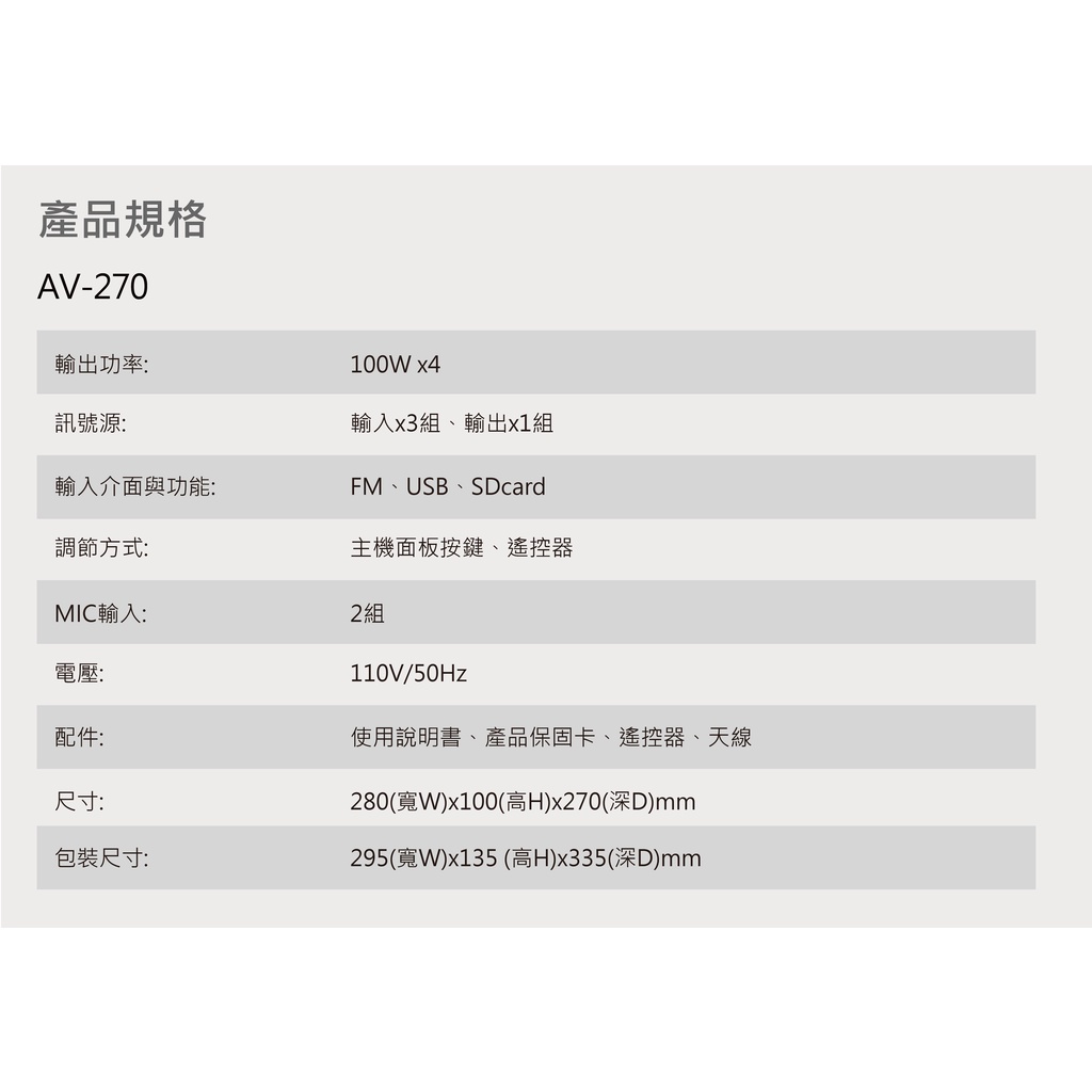 【音響大聯盟】POISE~ AV-270BT四聲道綜合擴大機 下單贈6米喇叭線