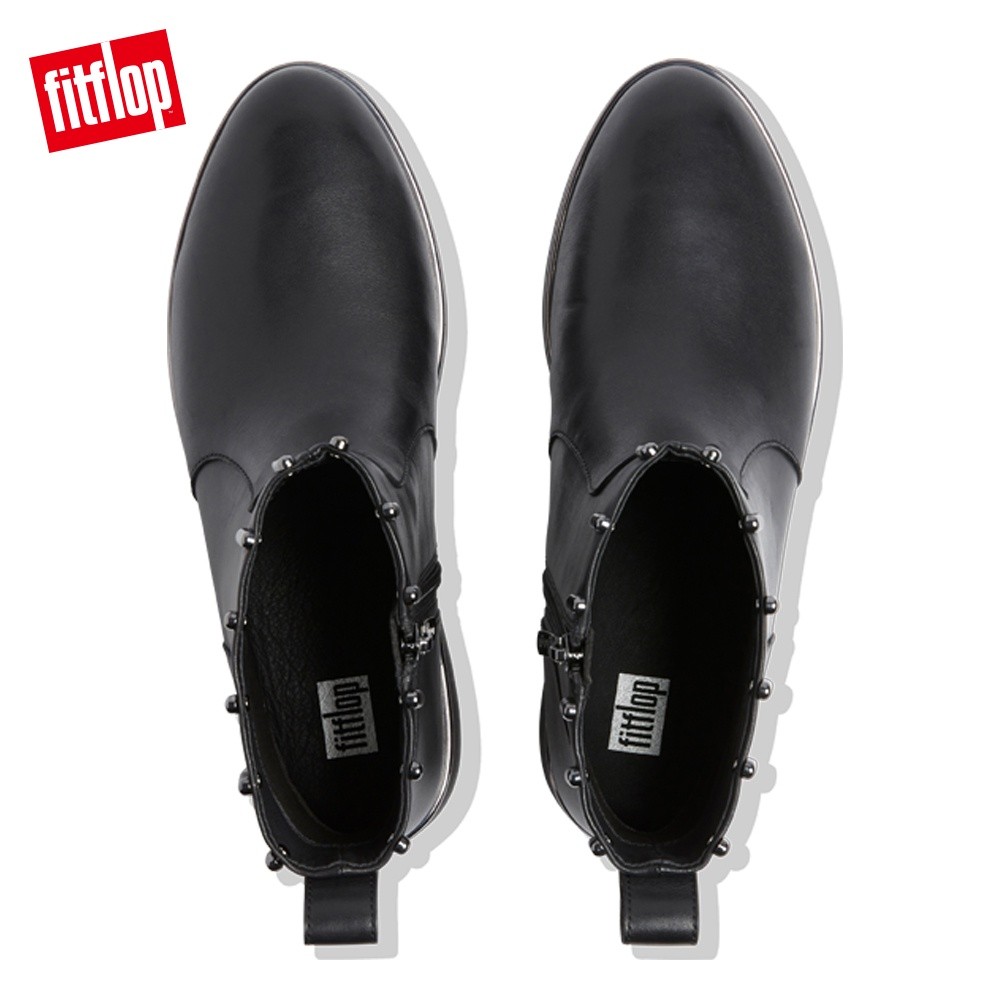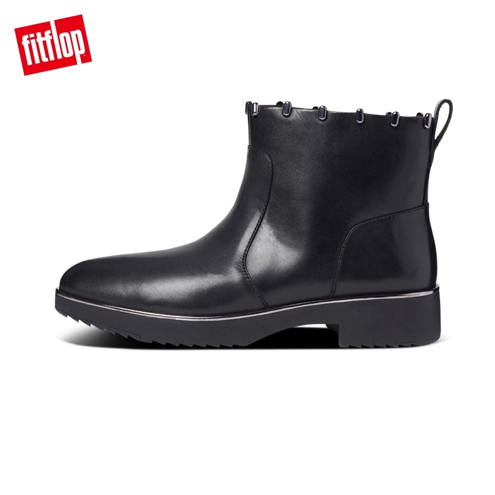 【FitFlop】JACINTA ART STUD ANKLE BOOTS 柔軟皮革拉鍊裸靴-女(靚黑色)